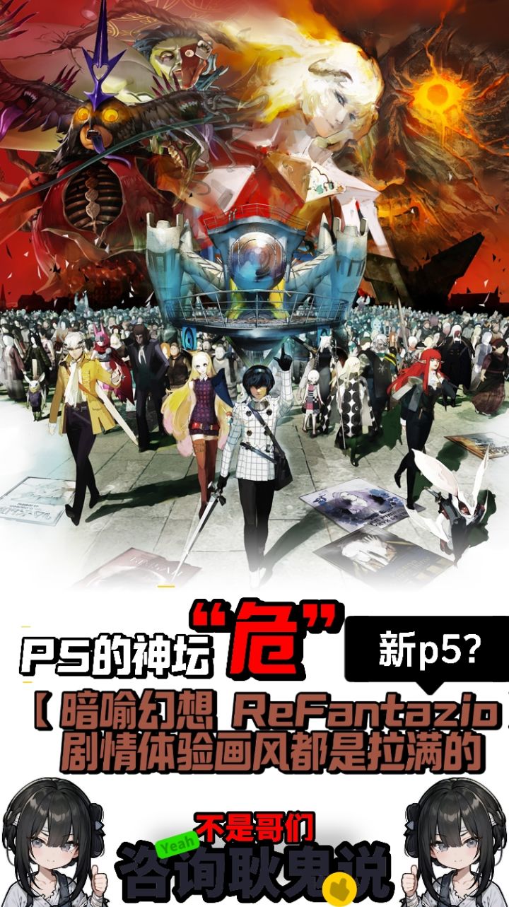 作为ATLUS憋了几年的“大招”《暗喻幻想》在近几日秋叶原举办的“ATLUS嘉年华”强势展示, 甚至嘉年华活动上似乎也被放到了一个极为重要的位置 —— 位于B1的试玩场地里,而且不但展出着游戏中的场景和角色的原画设定,场地正中还设置了一尊巨大的“阿基态”雕像。虽然游戏还末放出更多信息,但是大家对于这一款《暗喻幻想》是否保持期待,或者能否超越成为新的P5。个人感觉游戏真的挺不错的,画质剧情都挺吸