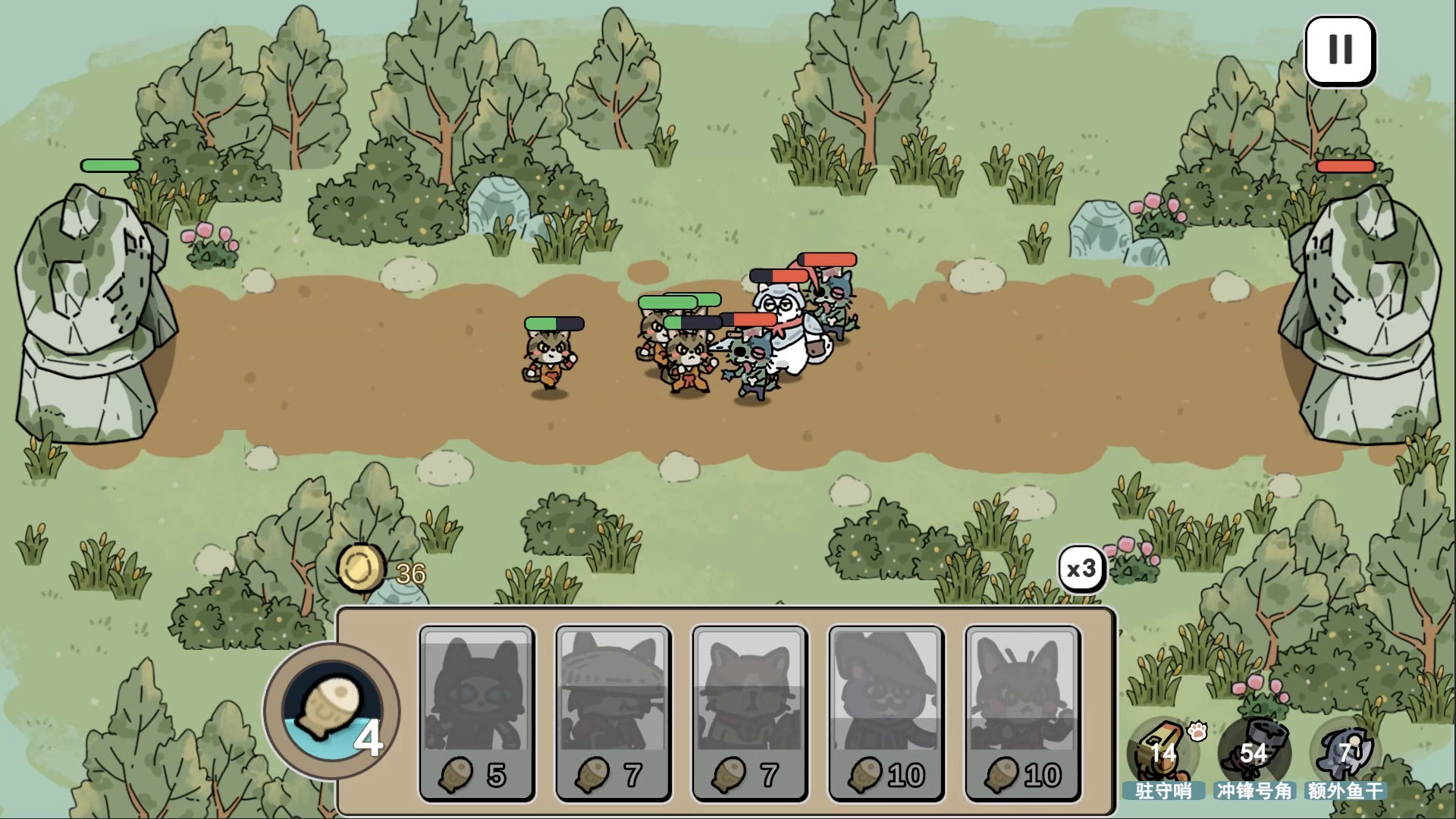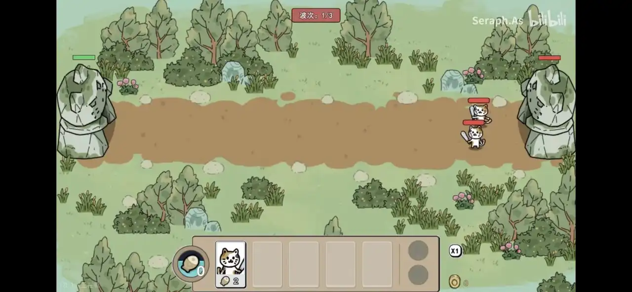 在构思这只猫时,我一直在想,“能不能让它既打得远,又打得近?” 测试之后发现,飞踹带有的击退效果,能很好地打断远程单位的攻击节奏;而近身拳击凭借更快的攻速,又能压制大多数近战对手。 这样一来,它其实是一个根据战局随时切换距离的应变型角色——你可以用它踹开脆皮远程,也可以贴脸快速清掉前排。设计上也故意让它没有漫长的前后摇,打完就能走位,去寻找下一个目标。 我是蒜苗,如果你也想用小鱼干指挥喵喵大军,欢