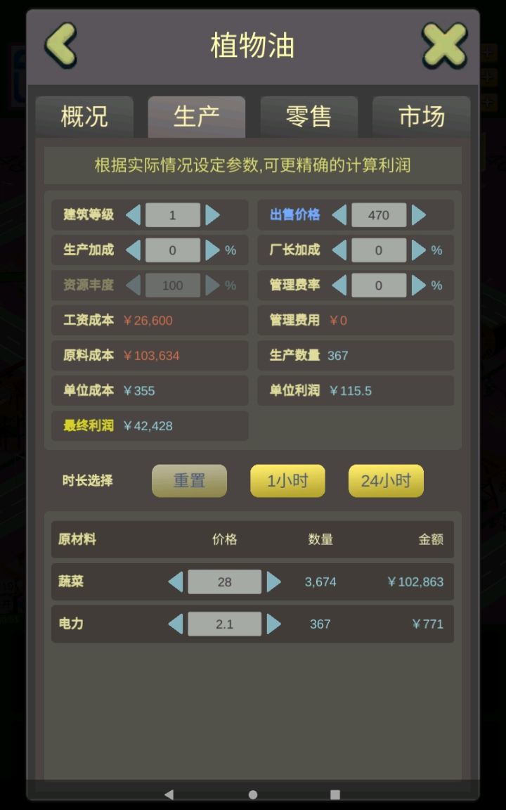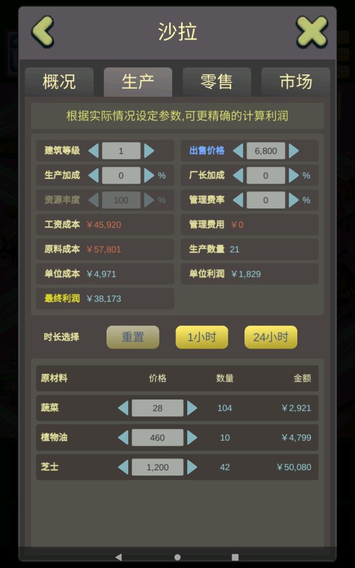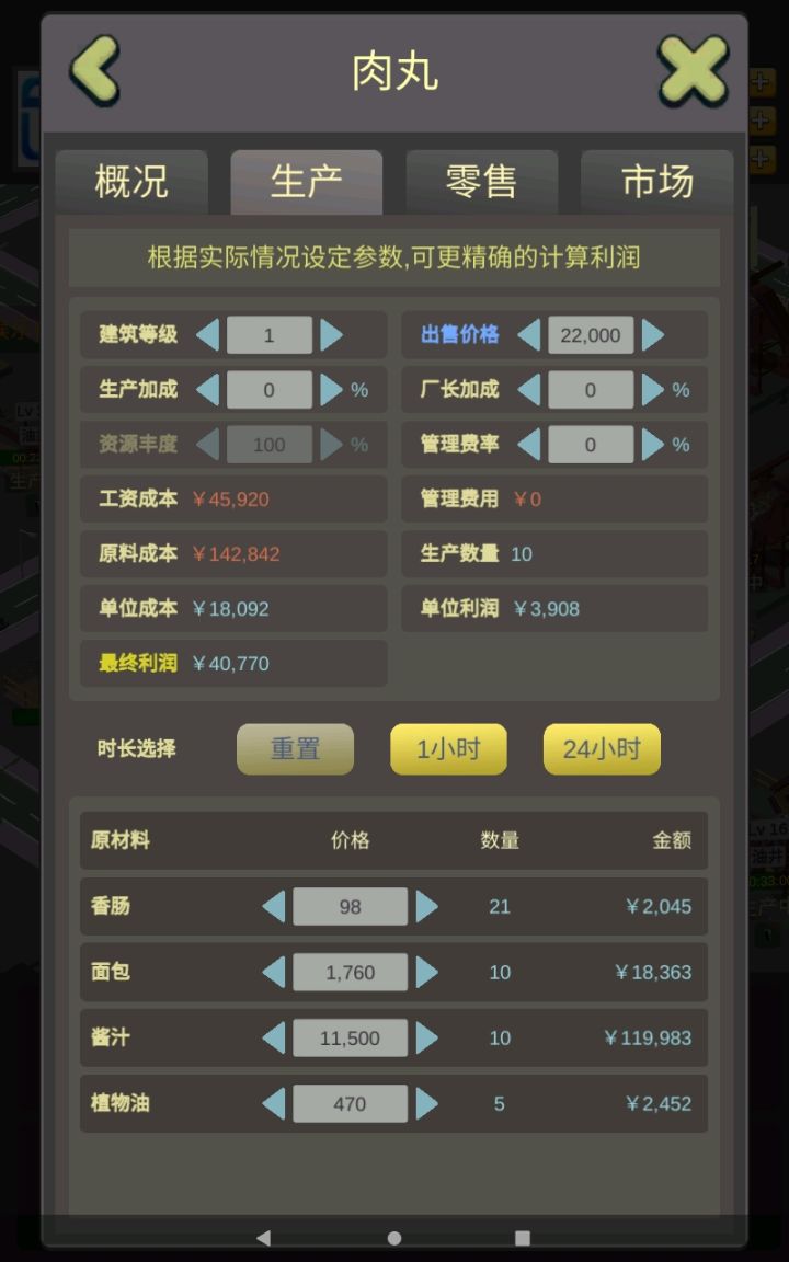 #商业大富豪 每个可以零售的产品都可以做成一个产业链,游戏最后产业链上每个环节的利润应该是平均的。以1级建筑为例,产业链单个地块每小时产出数据见图,大家可以参考一下只算了一部分的,结合游戏经验单地块1级建筑每小时2w以上利润就比较可观了#游戏攻略 #自产自销 俺是黄豆控股