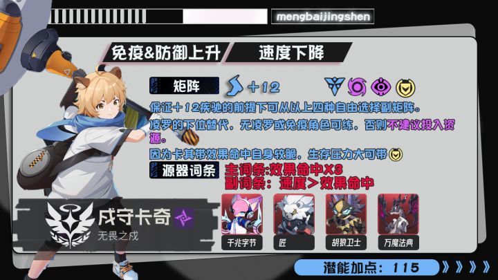 1、dot队绝对舒适区。2、常规队伍要求输出够(练度不够往下看),也就是C位练度要高。尽早击杀boss,避免被兵祸叠攻击减员一波带走。梨梨可替换多琪。3、嘲讽队(不要上缬草当治疗)理论上嘲讽不掉+双治疗+C怎么都能磨死,但也只是理论上。所以还是建议C位强一些。炼狱就先不写了,炼狱还没开。等开了再拉一下源器智壳试试。我是不推荐用弥瑟亚主C打的,这个角色的输出比夜离低一截,打的很慢。#