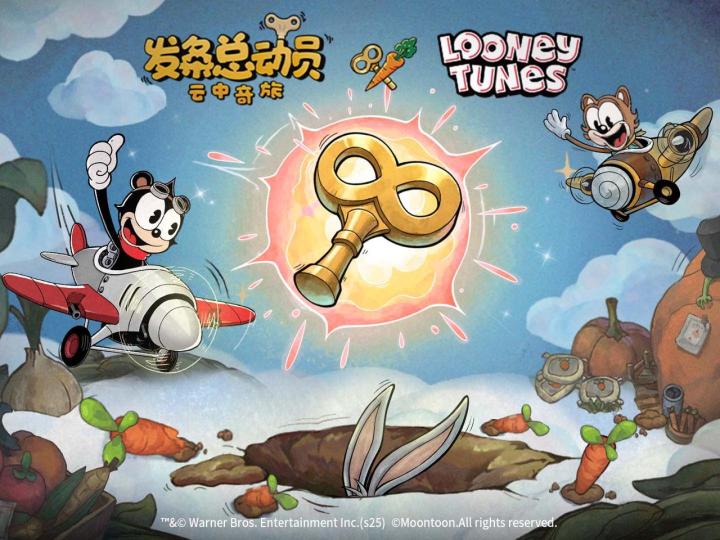 发条总动员 x 乐一通联动将于10月24日开启,胡萝卜派对等你来嗨! 当命运的发条开始转动,“兔八哥”与“达菲鸭”的争吵戛然而止——他们被一股神秘力量拽进了奇幻的云上世界! 兔八哥叼着胡萝卜悠闲起飞,达菲鸭挥舞水气球暴躁跟上!这对经典拍档即将掀起云上世界的狂欢风暴! 一根失控的神秘发条,竟将这对永远欢脱的经典拍档——兔八哥和达菲鸭,卷进了我们的复古漫画异世界! 胡萝卜、火箭筒齐登场,原本井然有序的