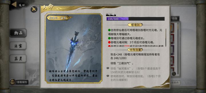 事件概述:噬魂剑大圆满之后反噬 辛辛苦苦把噬魂剑养圆满了,结果没几天就噬主,本以为是天骄之子,没想到是韭菜牛马吗喽。处理:回档卡噬魂剑状态,等境界上去处理 回档多次都打不过,只能退到没有圆满的档(如图所示:卡了一个技能没圆满),果然人不能对他太好,剑不能喂他太饱,只要卡着不圆满,就不会反噬,等以后境界上去了在处理吧。桀桀桀~#鬼谷八荒#噬魂剑#攻略