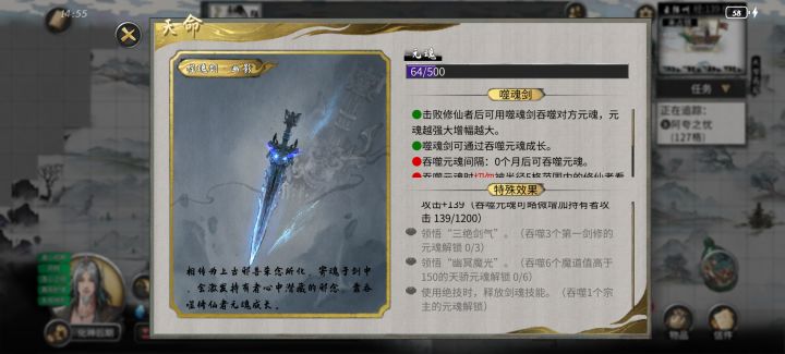 怎么吞不了?!!!早就过了3个月的冷却了,#鬼谷八荒 #噬魂剑bug只剩10个月就要反噬我了已经这把噬魂剑是我从npc手上抢过来的,然后最近又刷出了一个噬魂剑npc,然后和他碰面开始我手上这把噬魂剑就不正常了,求解