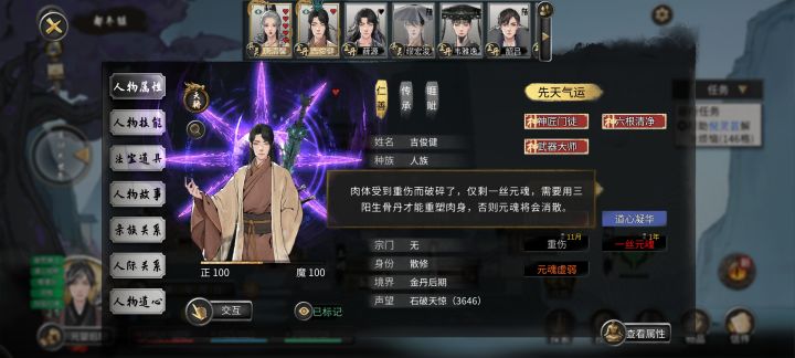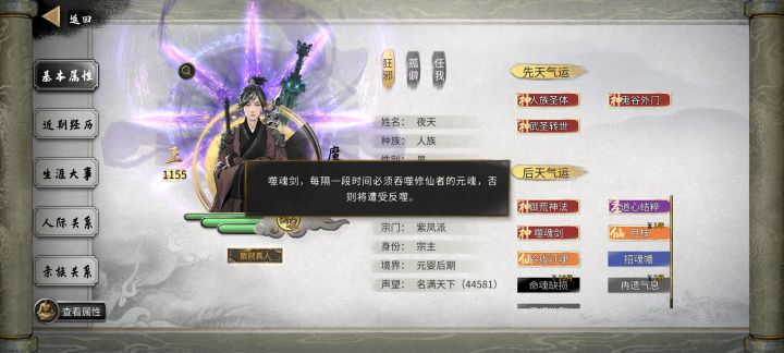 我本身有阴阳眼,然后在华封州遇到了后天噬魂剑npc就给标记起来了。然后一直发育到云陌州给他干掉之后原地等3个月也没见噬魂剑掉出来。看标记的地方那个NPC一直是一丝元魂1年,我时间都跳了一年也没见噬魂剑,那NPC状态也不见变化。等我解除标记之后彻底找不到那NPC了#噬魂剑bug