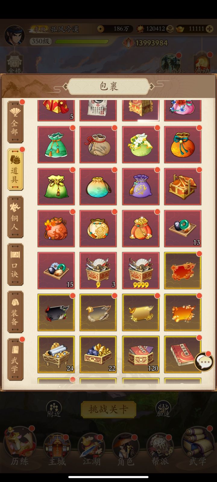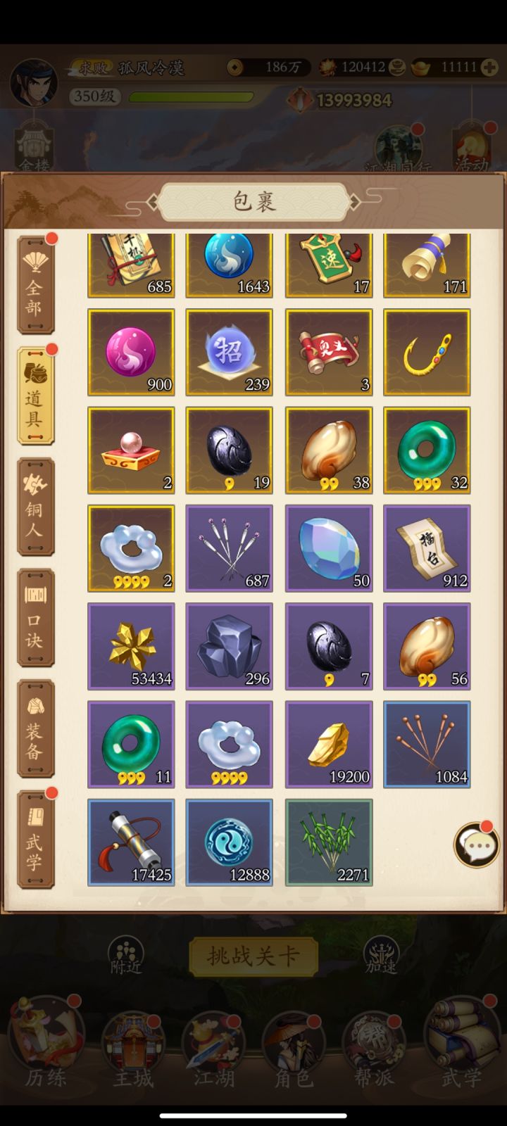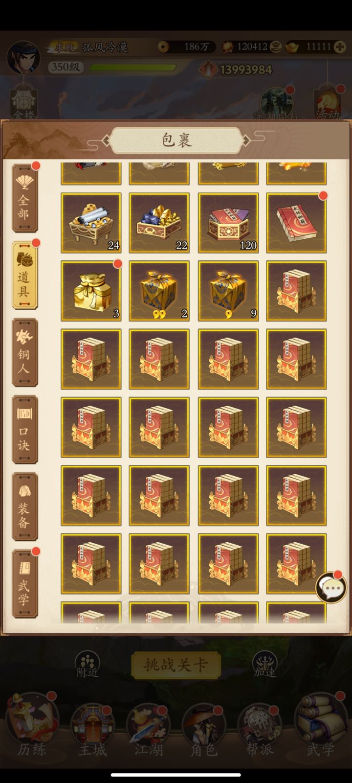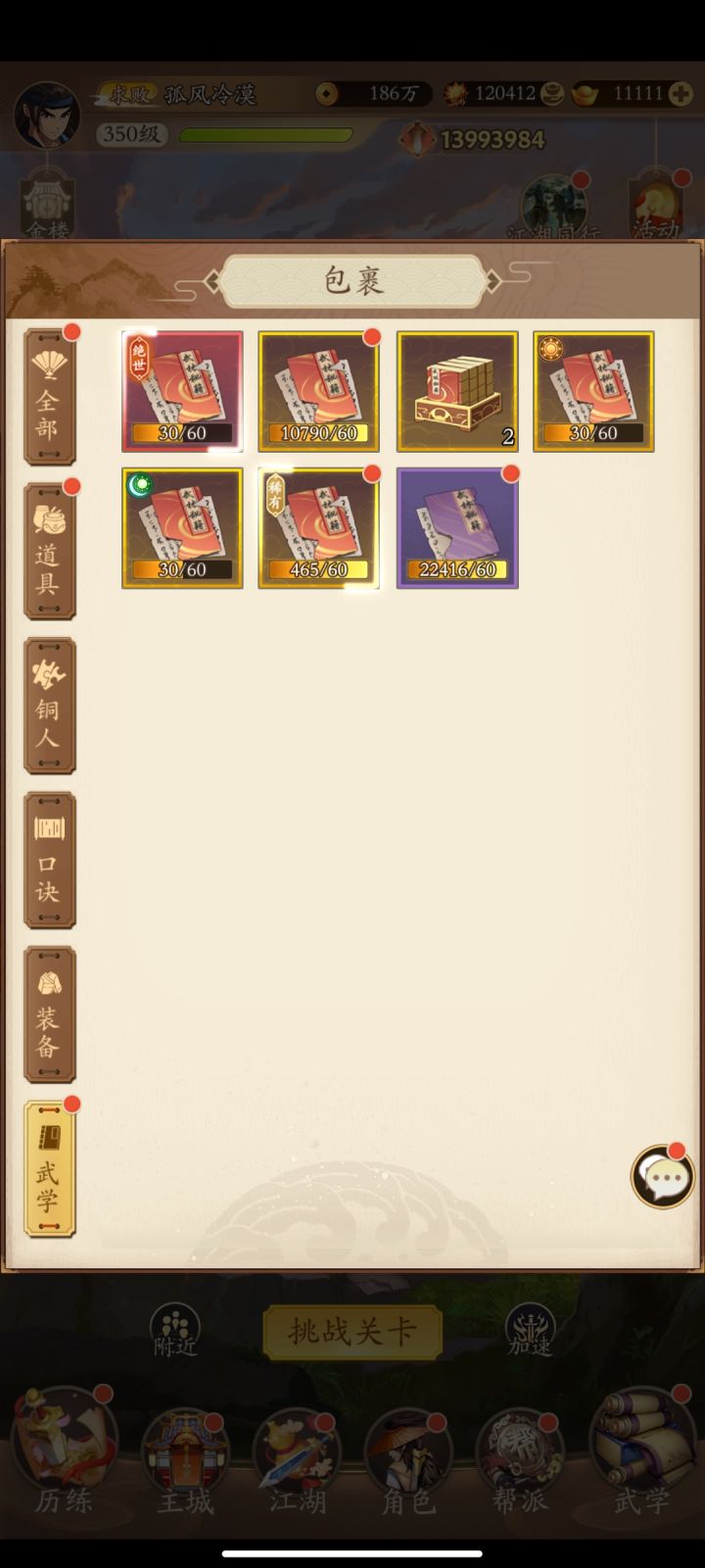 #无名江湖 #游戏日常 #囤囤鼠 玩了一年多了,最初的时候真的很勤快,查攻略,配武学,随着玩的时间越来越长,一起玩的朋友也越来越少了,渐渐的每天从什么奖励都不漏到每天活跃打满就下号,擂台都懒得刷(大佬每次刷够都会下武学,但是自己也不想去打,纯摆子了),依稀记得当初刚玩的时候,原帮主直接把位置耍给我,我带着五毒门一起发展到区第二(不在第一是因为那边都是氪佬,比不过),后来人少了,合帮过去了,我又莫