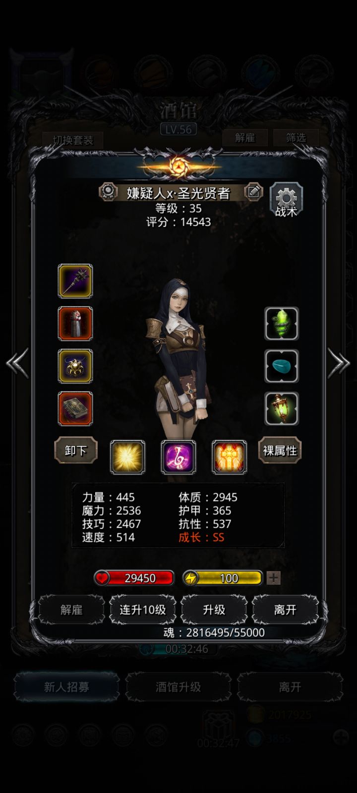 寒大爷是一个挺棘手的人物,有人被整得死去活来的,我这套装备我就暴毙了一次可以尝试一下敌方配置:一个boss带四个小弟,有群伤有单伤伤,随机放技能,而且4分钟狂暴阵容搭配:一般碎片寒如果是圣枪打法的话,无非就是祭祀神官巫医选2个,那应该怎么选呢,首先看你的黑骑有没有600抗(注:是抗性不是护甲)如果有的话就可以不用祭祀,因为拥有了600抗才不会被他的护甲衰给挂上,如果没有遗迹8的咸鱼袍的话基本很