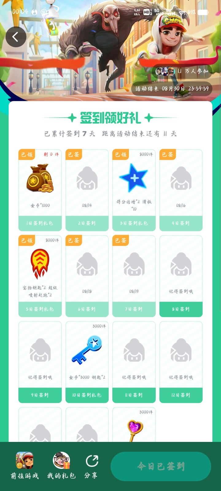 道具 人物 金币 钥匙 滑板#地铁跑酷兑换码