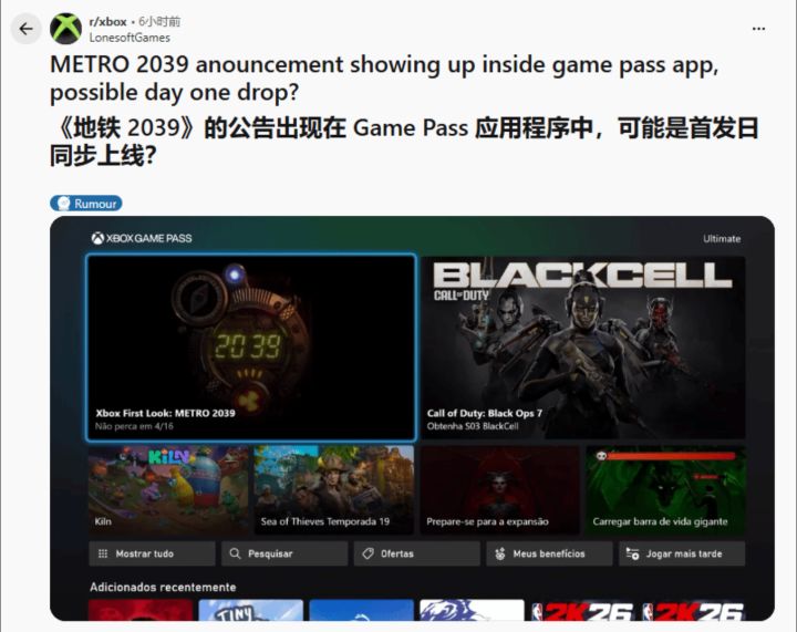 近期,Xbox Game Pass(XGP)页面突然出现《地铁 2039》的宣传信息,瞬间引爆全球玩家社区,关于这款《地铁》系列新作是否会首发入库 XGP 的讨论彻底刷屏。作为 4A Games 开发、Deep Silver 发行的经典末日射击 IP,《地铁》系列凭借沉浸式的核战后世界观、硬核的生存射击玩法,积累了全球海量死忠粉,新作《地铁 2039》此前仅公布概念预告,正式发售时间尚未敲定,此次