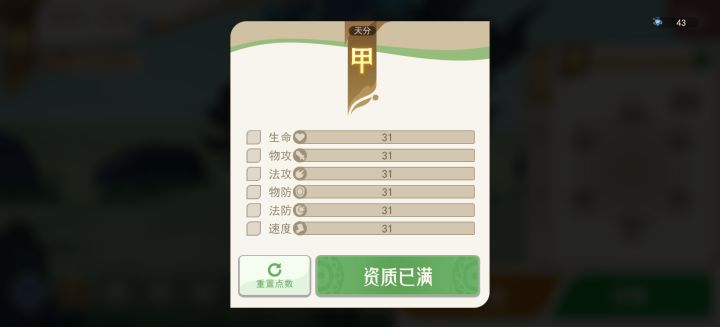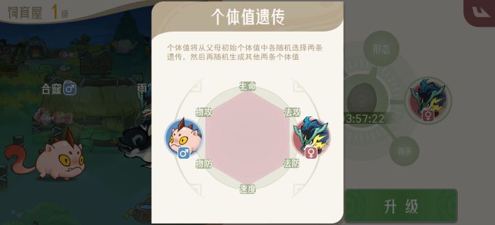 大家好,我是非酋。没球了,写一下攻略。0915补充:资质要初始资质才有用,水加的不算。我们都知道(并非),培育需要有相同属性的两只宠物,一雌一雄(雨师只有雌性,水玉鱼和比翼鸟雌雄同体)。tip:建议官方在查看宠物面板的地方加上性别,不然每次孵蛋都不知道性别。在父母的各种属性中,词条和闪光是不遗传的,只加一点点概率(个人感觉聊胜于无)。剩下能稳定遗传的只有天分(这里应该是游戏显示个体值,实际