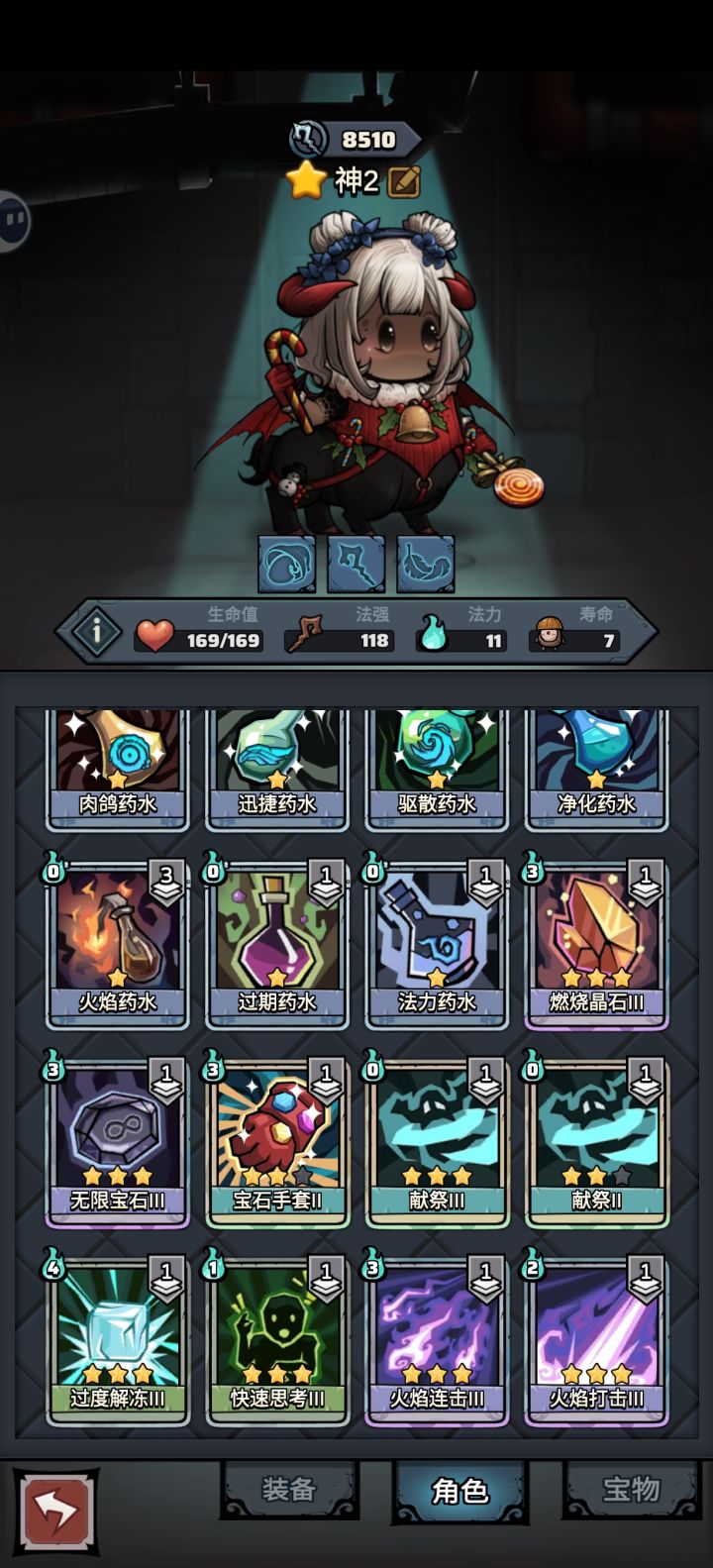 培养成型卡组太舒服了,少花很多水晶去升级卡牌,欧一点还能出需要的宝物,再带一个幸运天赋去刷稀有宝物,玩着玩着就笑了。(我配的这只开局用宝石手套配合寒冰铲,再出过度解冻,最后一个火焰打击,最快五张牌打三四千伤害,可惜没刷出蝙蝠牙齿,不然续航就有了。这只血少是手贱拿了几次扣血上限的宝物,打竞技场碰到个反伤的怪就毁了,但如果能接到那个添加灼烧同时造成等量伤害的任务,这套体系就不怕反伤了,几乎无敌,除非