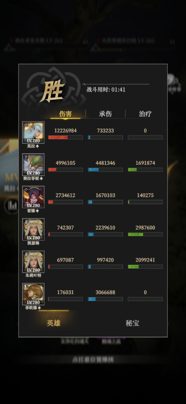 站位的截图操作失误了,借用参考教程的图😊感觉这一关特别卡锻造和秘宝等级🥴🥴3C的威力都在3.9-4万,蕾娜破甲7.1万,亲王和断荆破甲7.5-7.6万。秘宝威力加成493%,详见最后一张图。参考下面的攻略,装备稍微差一些,蕾娜带的玄兽面甲等级只有100,导致蕾娜的破甲差不少。https://www.taptap.cn/moment/747141765806426701?share_id=