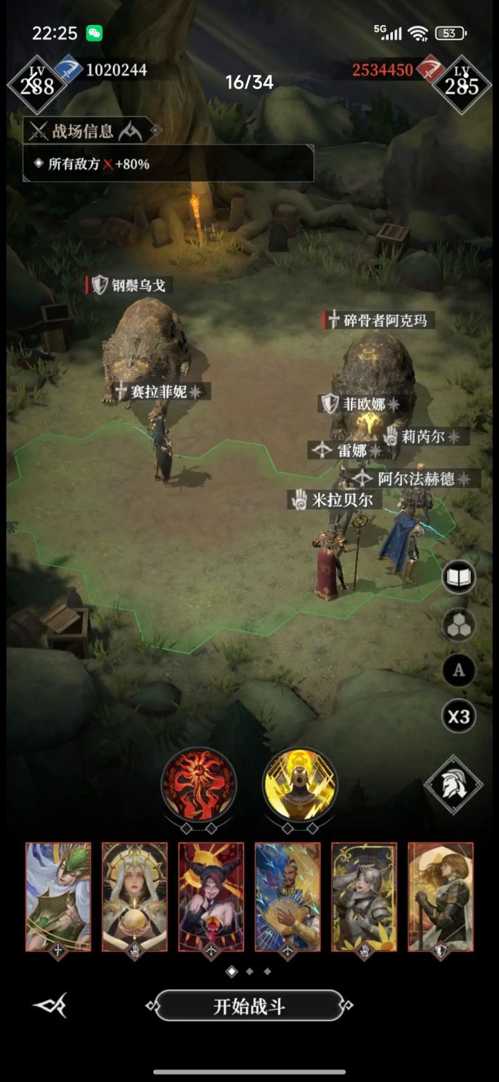 借用了烟雨画清风总结的打法😊注意两个神力都给亲王,这两个熊护甲高,但魔抗比较低,亲王召唤的分身输出更高,从最最终的输出结果也能印证这一点。第一次神力都给了蕾娜,居然超时没打完#地下城堡4骑士与破碎编年史 #墓穴