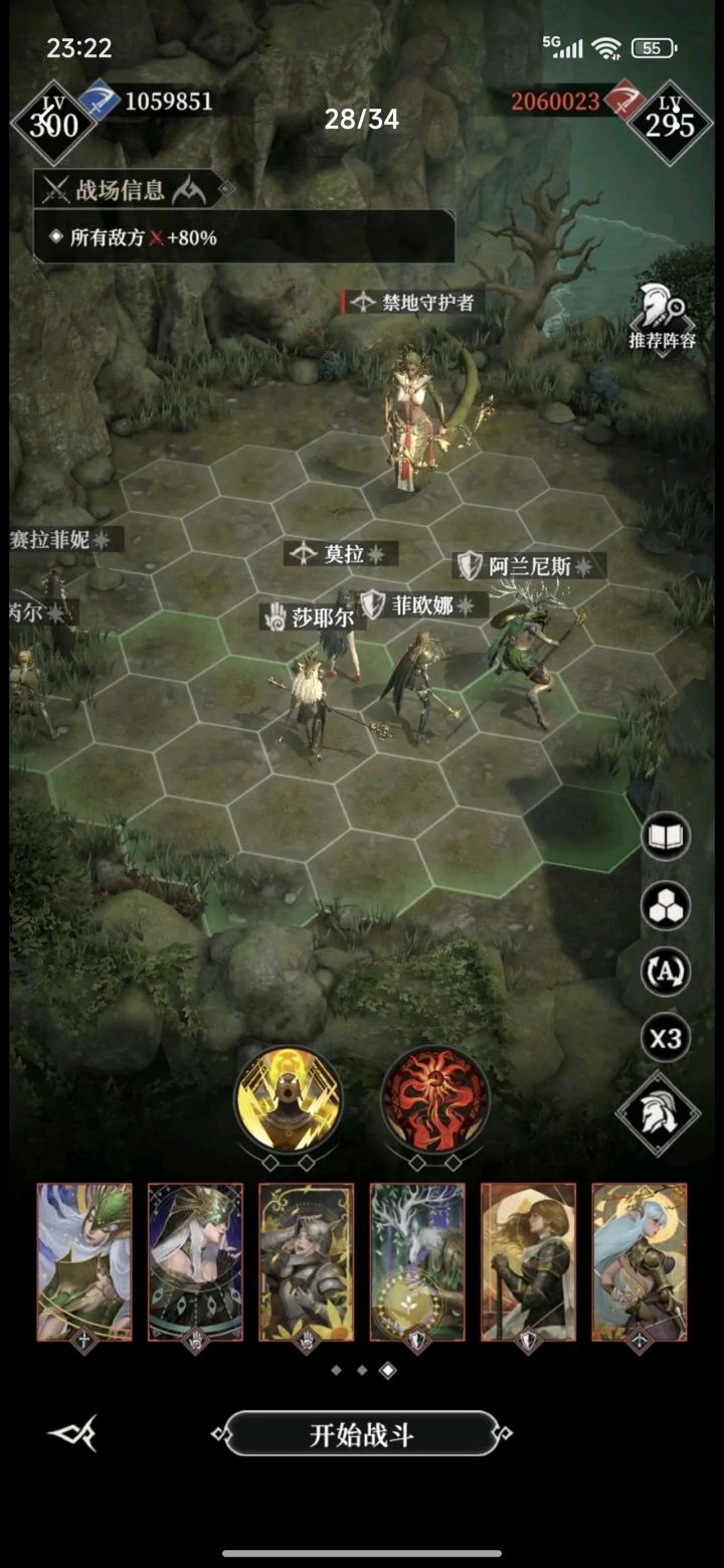 站位不重要,纯看运气前期boss少打两个输出莫拉和熊女,最好能放出大招,多打点伤害,尽快破盾后面就看剑圣的闪避,以及放狂热神威大招的时机了。剑圣威力4.58万,破甲9.18万,武器锻造两个130,一个124,天赋4-2迅影斩5次#地下城堡4骑士与破碎编年史 #墓穴