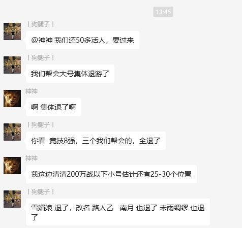 其他区也都是这样,这次更新退游的真的不少。我就想问问策划,每次更新都逼着人大批量弃坑,怎么做到的?你玩游戏吗?每次都凭感觉更新内容?侠客镇派升级合理吗?神兵加一百多万战力合理吗?神兵逼退平民微氪,家传镇派逼走氪佬。一点让人没有玩下去的动力。不要在凭自己的感觉瞎搞了,游戏已黄。#墨剑江湖 再见!