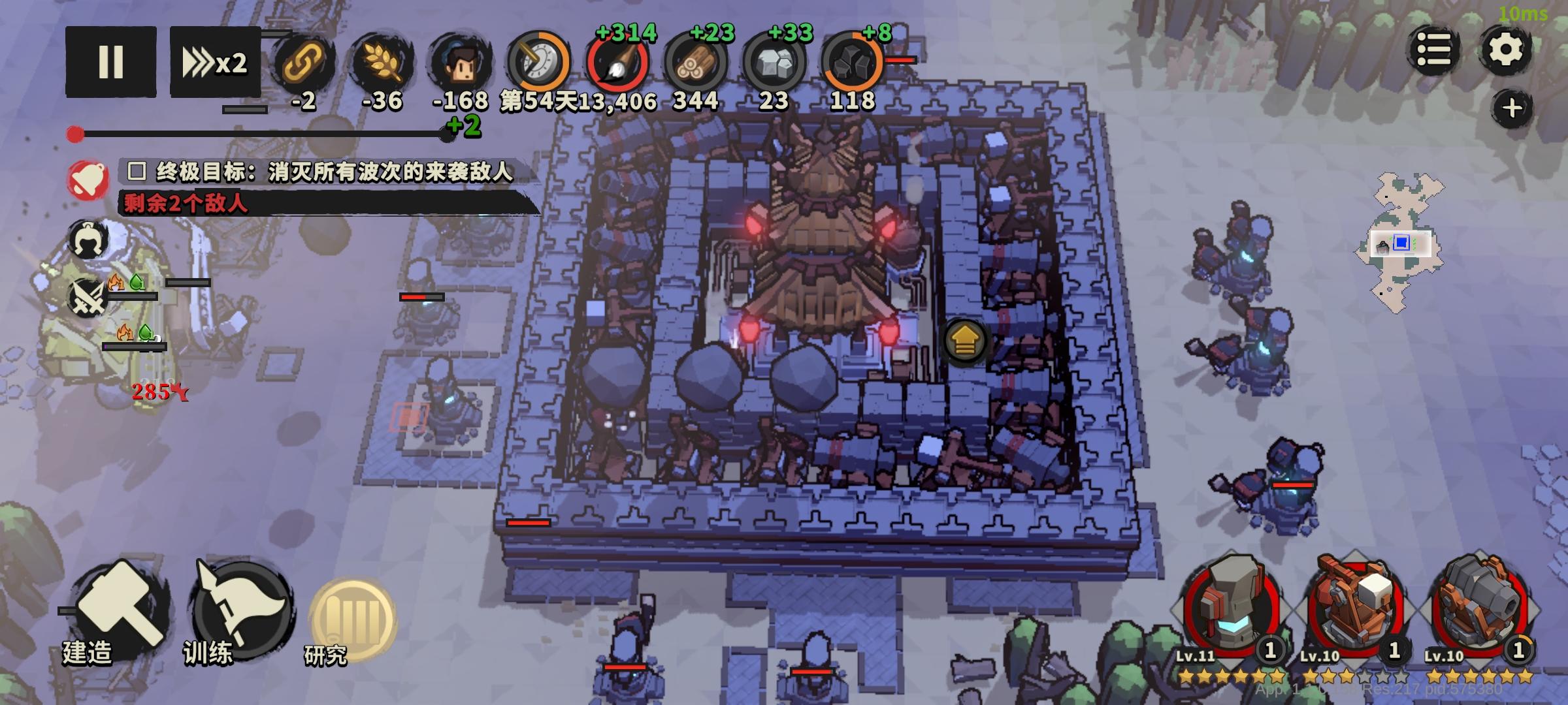 一号视频可看到地图概况(田资源分布四个角 石头在四角中段 乌薪在石头里二号视频是最后一波的攻势图三号视频是木头不够忘记造西南墙了#墨守孤城 #墨守孤城一击必杀