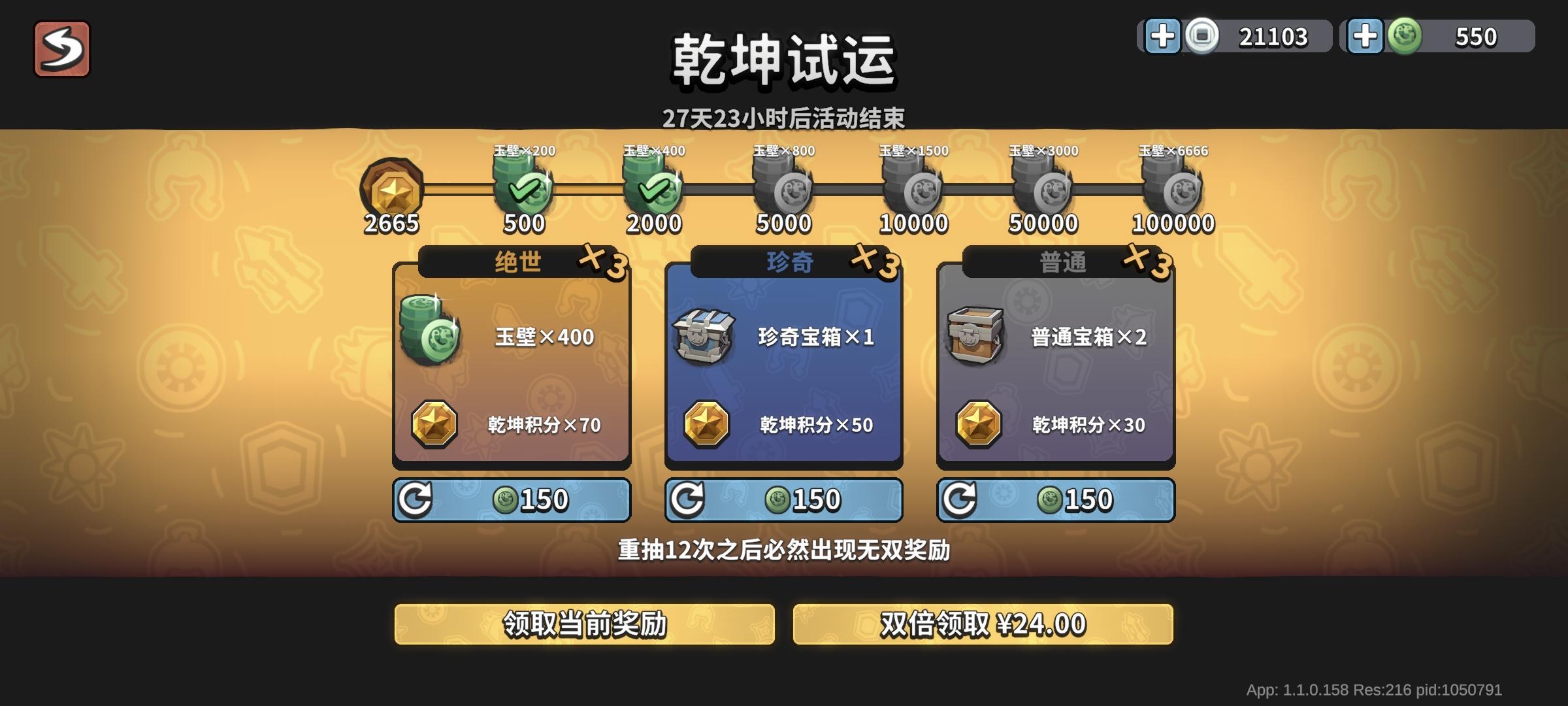 720玉璧开始抽,抽完3030了!乾坤试运真好玩!#欧皇附体 #墨守孤城 #墨守孤城公测开启 #墨守孤城福利