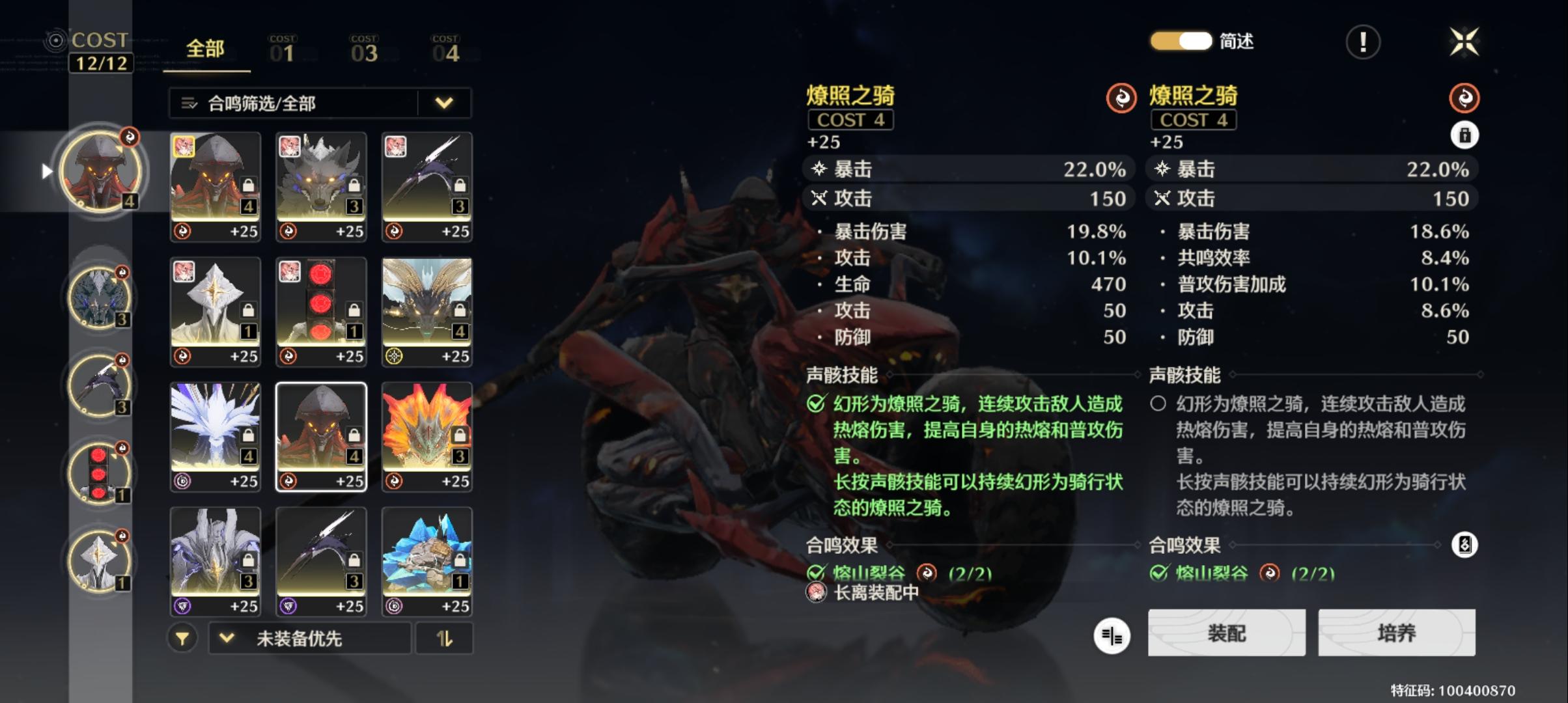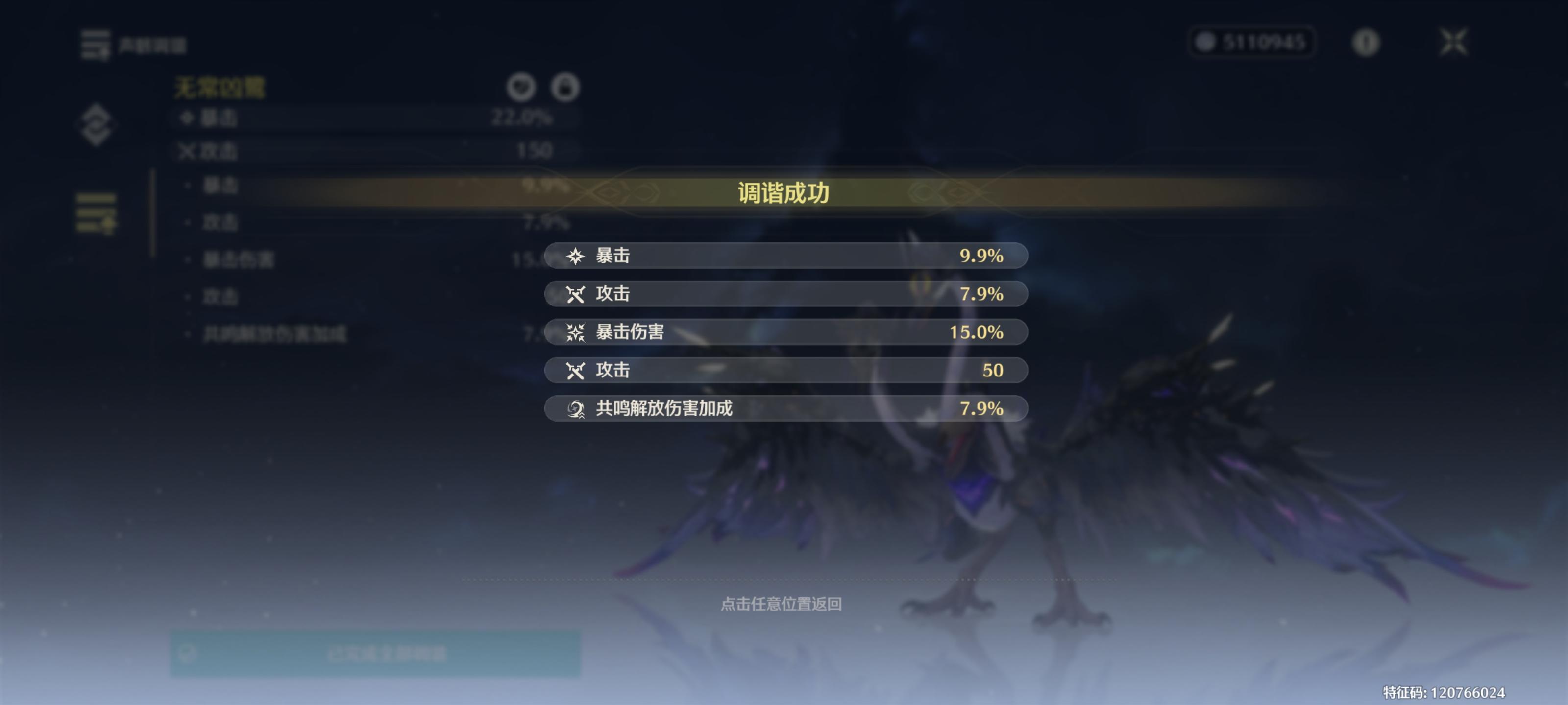 然后最离谱的是连着两个燎照之骑,两个两个词条开,都是第一个词条就出爆伤,数值还挺高,结果五个词条开完都没出暴击,服了,两个防御但凡出个暴击都还行的#声骸分享