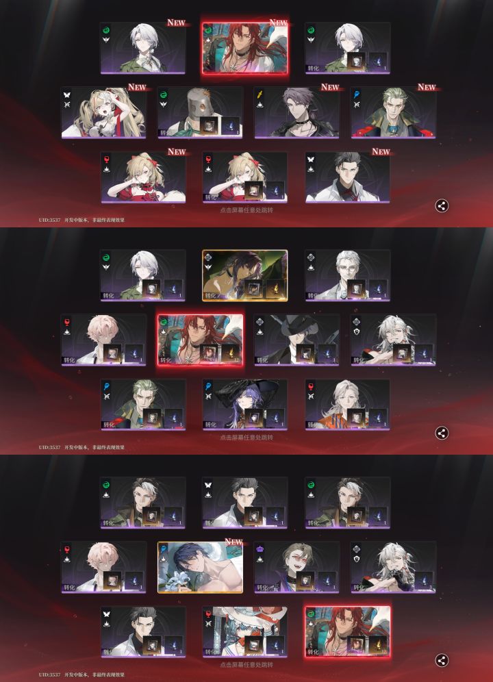 100连的爆率如图2 太离谱了 5张6星卡叠了两层海上浪子星闪这个爆率或许三测结束前我能叠满星闪 也一直在好感度攻略他 不管几层最后会记录数据+小传的#夜幕之下 #夜幕之下三测 #代号砰砰 #夜幕之下走火测试 #夜幕之下星闪