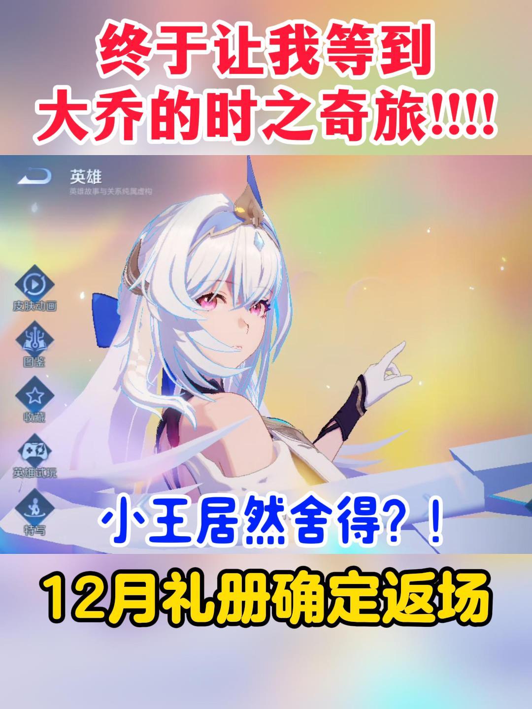12月礼册已确定返场大乔的时之奇旅和关羽的决胜骁骑皮肤。#游戏讨论 ##游戏资讯 #王者荣耀 #大乔