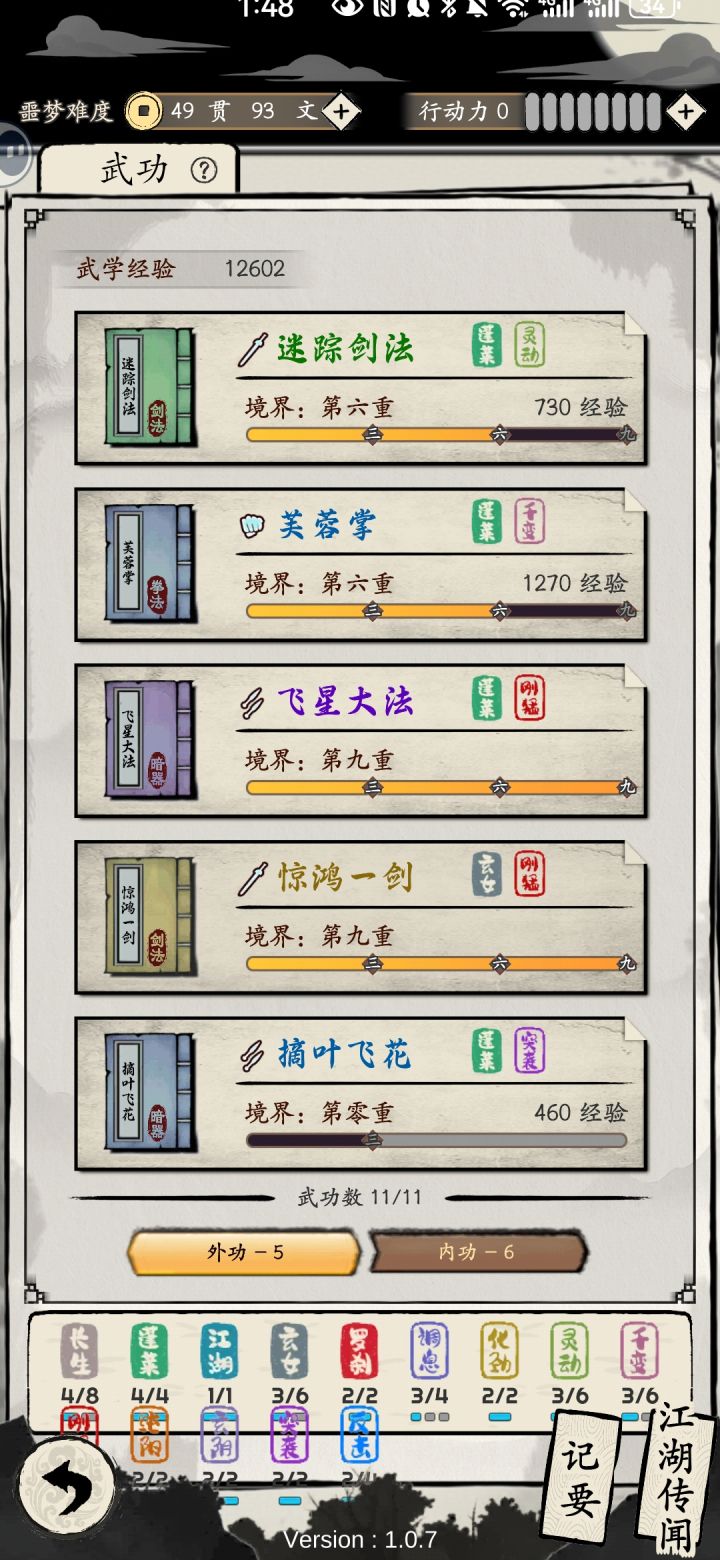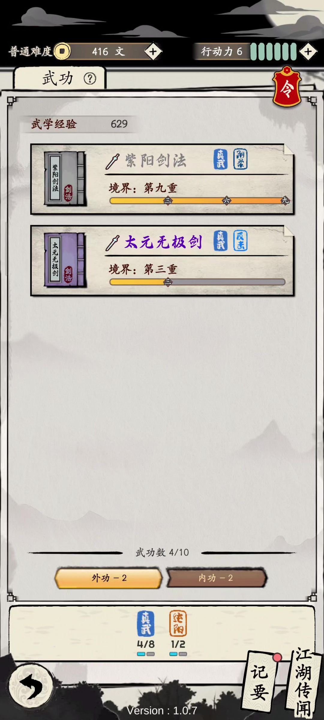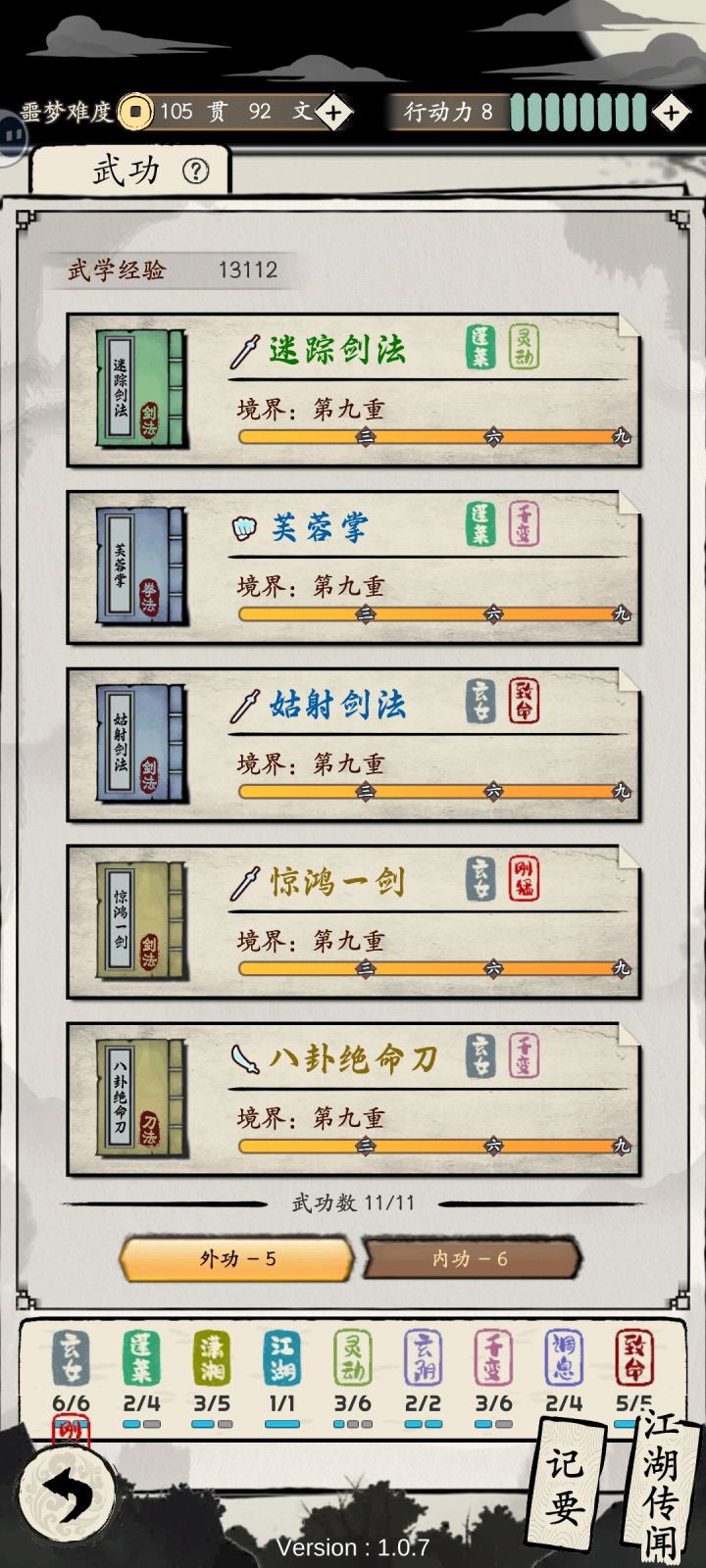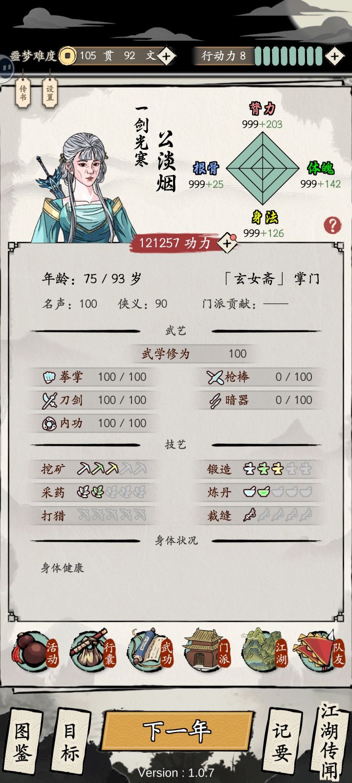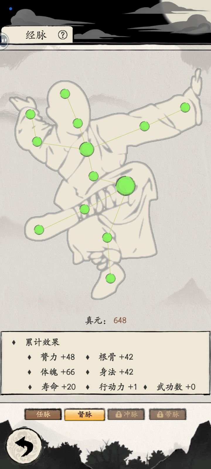🔥天下风云出我辈,一入江湖岁月催🔥💞困难模式 10武 8行动力游戏基础设定:*任→督→冲→带:四脉中最低点亮冲脉大穴行动力+11️⃣以下以玄女斋为例:玄女,幽冥,百花等等很多门派都适用此教学,喜欢用剑,功法就选剑法,喜欢用拳,功法就选拳法,等等主剑副暗器(个人习惯)*困难模式,10武功数 右上角8行动点(冲脉点亮大穴行动力+)① 锦囊妙计选择:李白,贪婪,湛卢三国,灵丹,反击悬