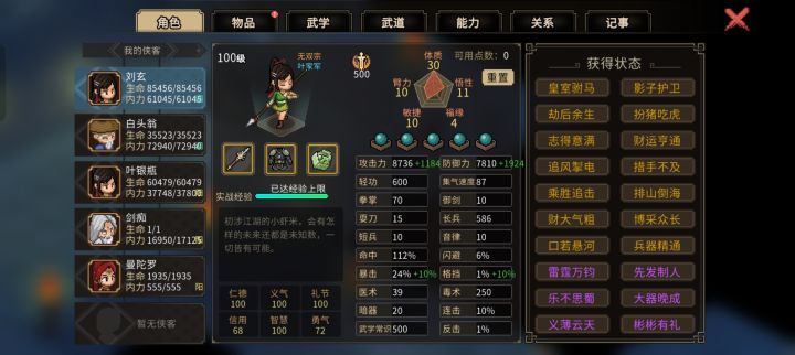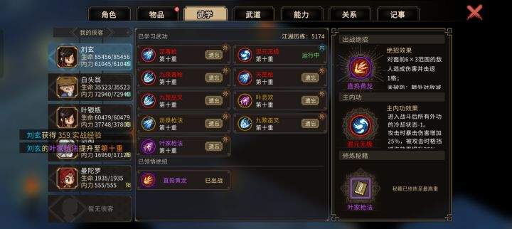 废了好大劲,终于一大堆红武功了,589长兵。#大侠立志传 #大侠立志传天赋攻略