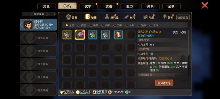 无队友,单爬塔,爬到20层中间没回复,最后跟20层boss同归于尽,但我要是满状态打20层应该稳赢#大侠立志传无极洞心法 #大侠立志传