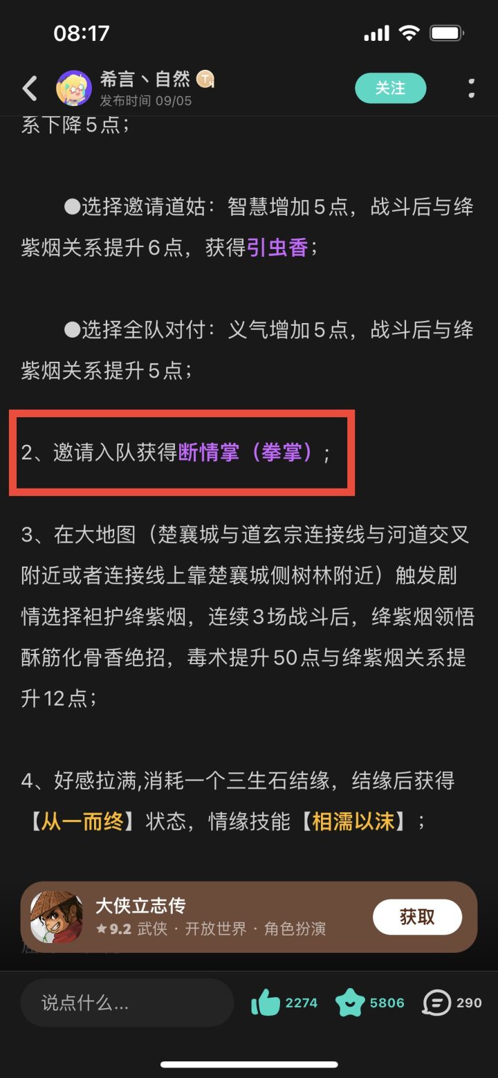 之前一直看官方指定的结缘攻略,忙活半天才去结缘,今天重开一个档无意间试了一下,原来部分角色(花四娘、绛紫烟、叶银瓶)只要在队伍里,且拉满好感,无需做后续剧情也都是可以直接结缘的,目前我重开的存档就试了这三个能直接入队的,入队后的剧情基本都没触发,直奔白云观解锁月老祠就结缘了,而且结缘后也是可以去触发后续剧情的(看图1左下角文字,刚说完从一而终就离队了狗头)推测其他的角色应该也是差不多