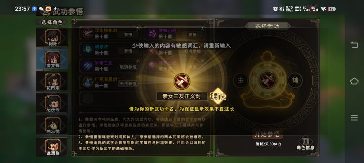 素女剑和岁寒三友结合,取字怎么就不合规了?想不通#大侠立志传 #大侠立志传bug