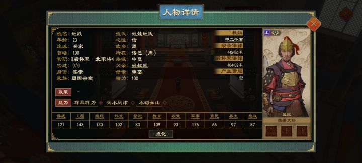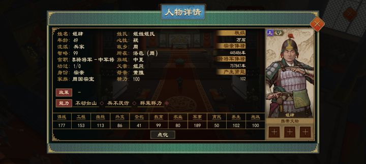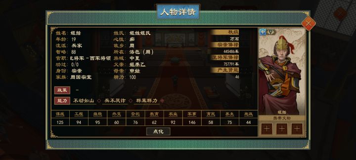 在很久以前的大周中(即23年底更新的版本之前,该版本增加了公卿出镇),卿室都是较为完整的。但随着设定更改,游戏中常常有把卿室拆开的操作 比方‘春秋五霸‘ 剧本中的楚国,屈、斗等氏族都出镇,且其人物均为1(说白了就是常仅有1人有卿族身份存在)。屈瑕、斗斑等人都以庶族身份在国内任职。晋国也是同样,先氏、韩氏等等也出镇,但差不多同样为1人。比如大名鼎鼎的士蒍作为家主出镇,但其子又作为庶族呆在国内。这