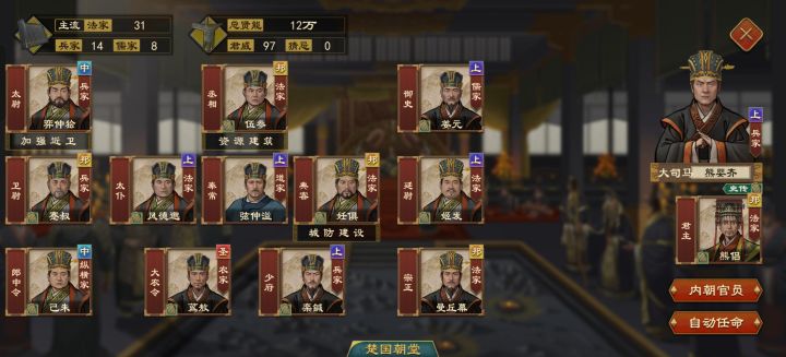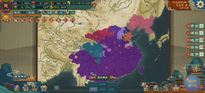 玩西周平王西迁剧本楚国,好不容易玩了两百年,到楚庄王这里了,人在世没死,强制给我摄政模式了,难道还有强制完成历史典故:蛰伏三年,一鸣惊人的剧情??这蛰伏直接给我托管了,四面树敌#大周列国志摄政模式