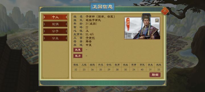 #大周列国志摄政模式 剧本是战国公元前326年的卫国,过去差点被齐灭了,结果依附了魏国稳住了阵脚,过去也有个高智略的摄政直接让国力涨了一千,我就对这个摄政保持乐观的看法