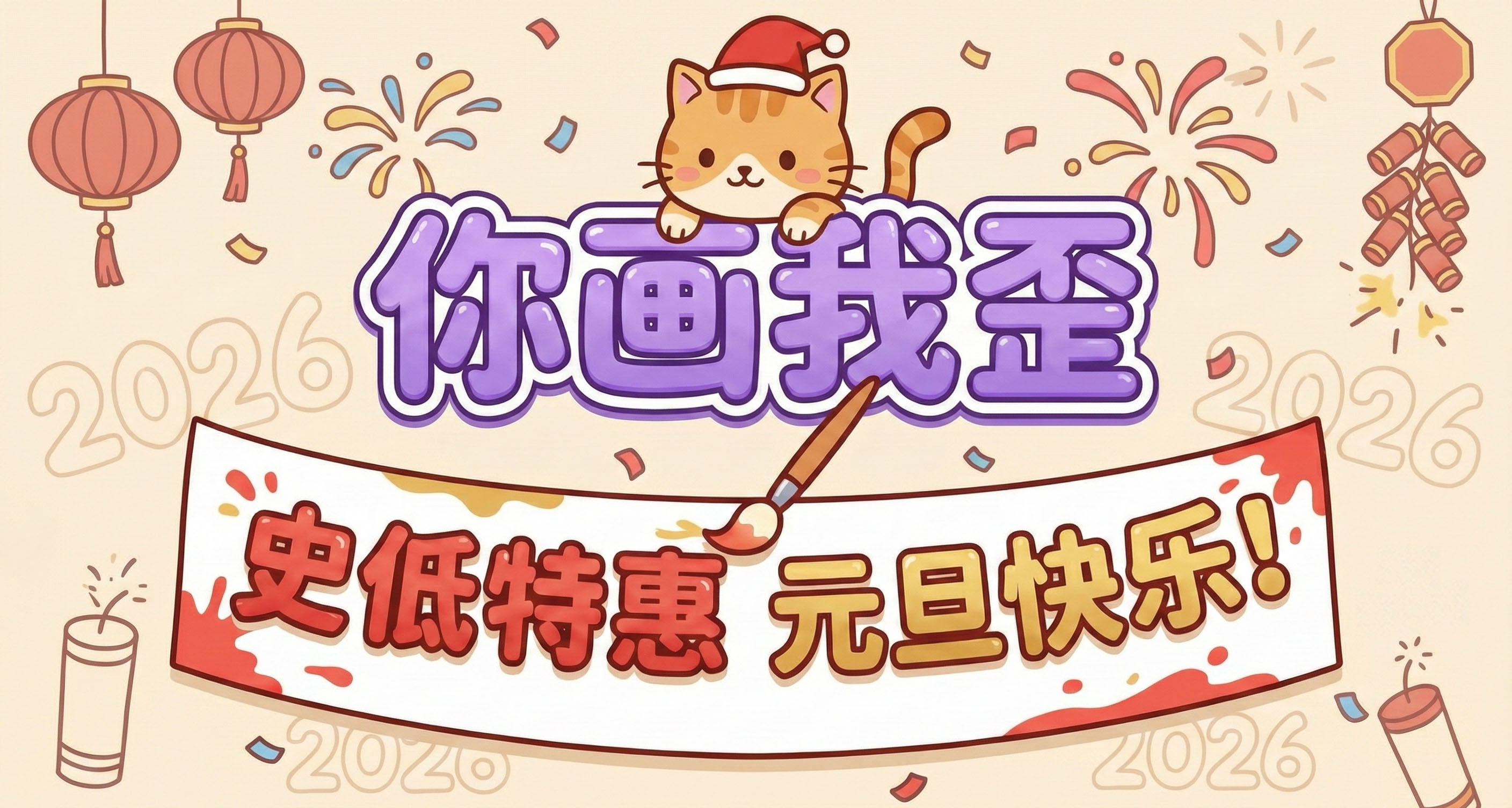 #你画我歪 #大家元旦快乐 #steam游戏 #免费试玩 ✨ 跨年特惠 · 年度最低价告别2025,一起画进2026!《你画我歪》推出全年最大折扣,史低价格仅限元旦期间!适合与好友组队欢笑、随机匹配同好即兴创作,开启全新一年的欢乐绘画时光~🎮 先试后买 · 免费体验如果你还没体验过《你画我歪》的乐趣,欢迎先在Steam页面下载 “试用版” 免费游玩部分内容!体验后再决定是否入手完整版,画得