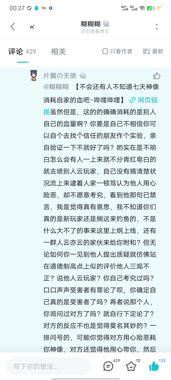 我的上一个帖子控诉了某个血牛玩家把我神像吸干的事情,然后就有好几个类似下面这个人的观点,然后下面这个人是说的最离谱也是最凶的。我明明记得就是过了个剧情神像就干了,怎么会不是那个人干的呢?有没有大佬和我说一下到底是怎么回事呀,他们下面说的是真的吗?为什么会有下面的说法出现啊#萌新求助#大无语