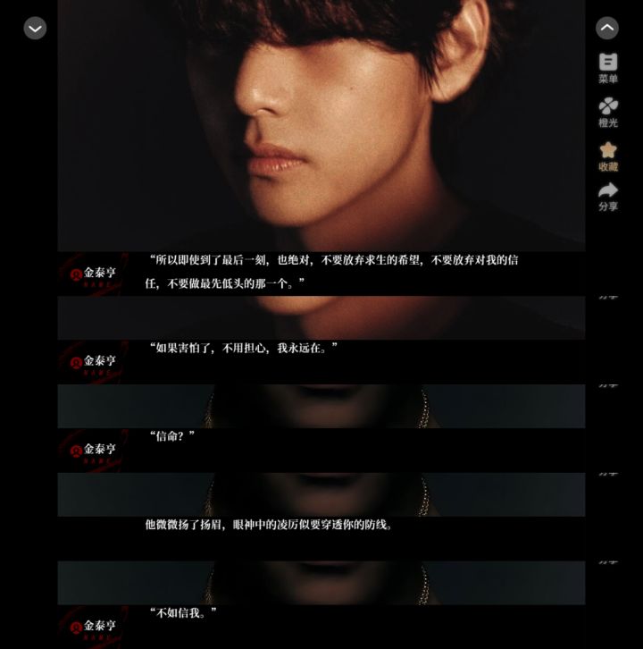 "所以即使到了最后一刻,也绝对,不要放弃求生的希望,不要放弃对我的信任,不要做最先低头的那一个。""如果害怕了,不用担心,我永远在。金泰亨"信命?"不如信我。1.13#bts #橙光 #大明星 #金泰亨