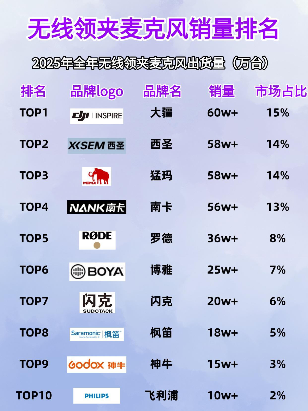 2025年全年销量最高的十款领夹麦品牌