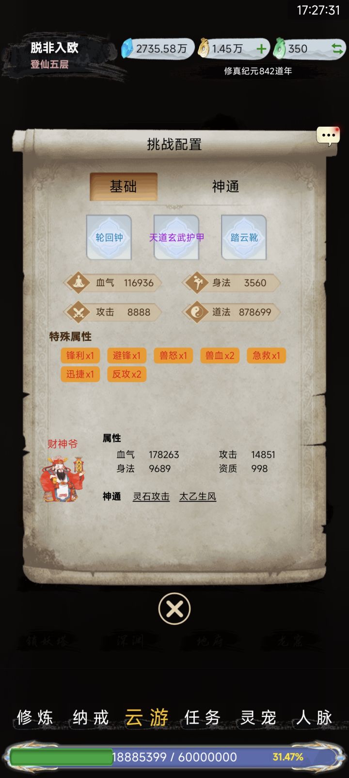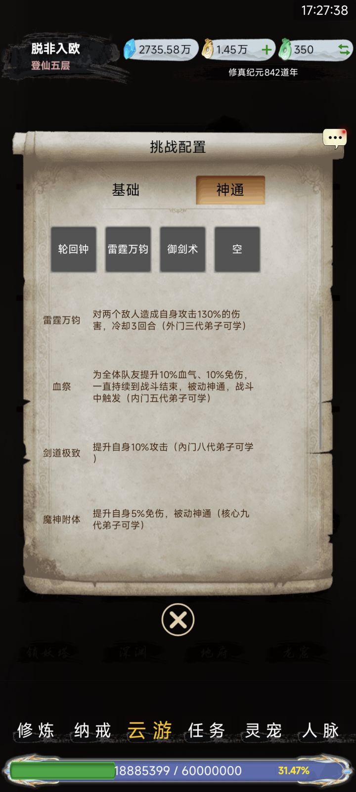 #仙境苍穹 #大道之争 我个人是选择法宝增加战力,神通就第三个技能一定是回血