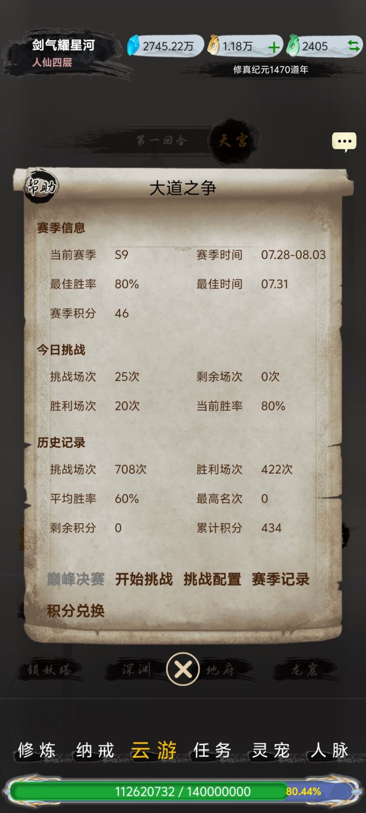 今天莫名其妙的胜率高#仙境苍穹 #大道之争