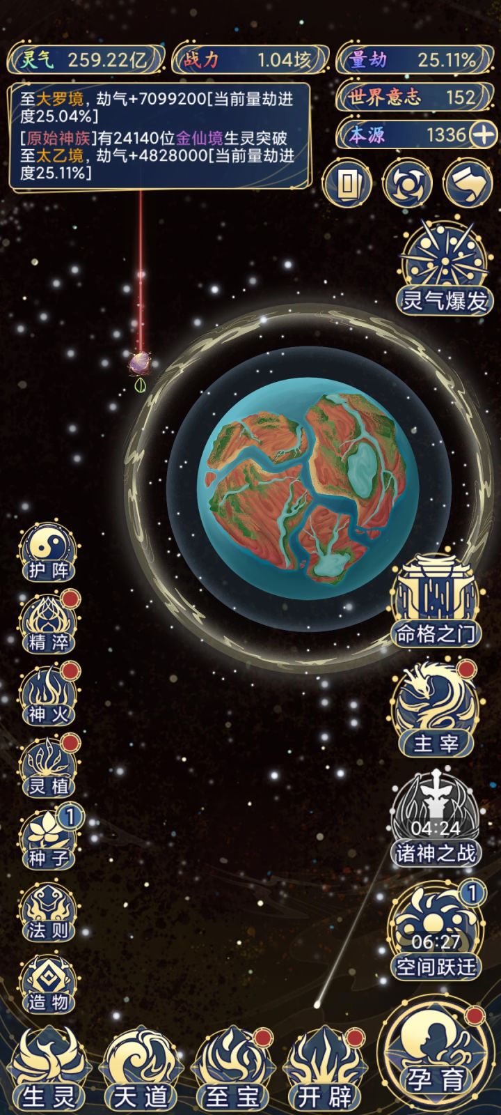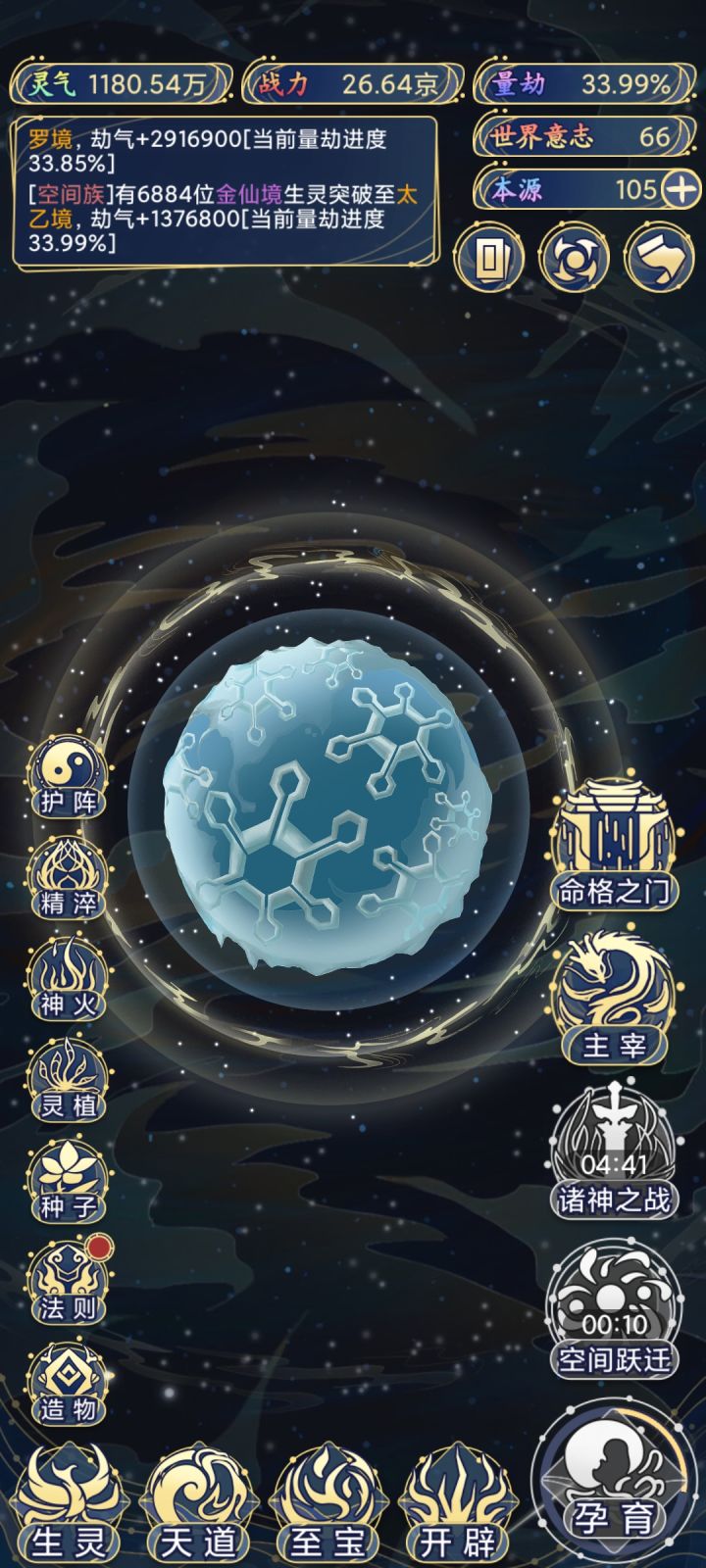 #天道创造各位大佬 #天道创造攻略 主要是看大佬的攻略,然后确实闲得无聊,主要培养的人族,然后红色超脱只留了两个(主要是好看)后缀变成“京”之后几乎没啥变化了,一开始还能通过强制突破,后面就只有刷出来道韵、外域鸿蒙紫气刷成圣,最后刷圣灵之力到巅峰才有点变化~广告确实没少看hhh