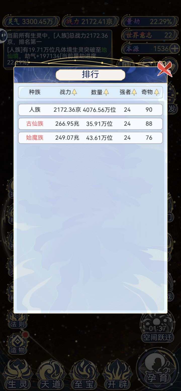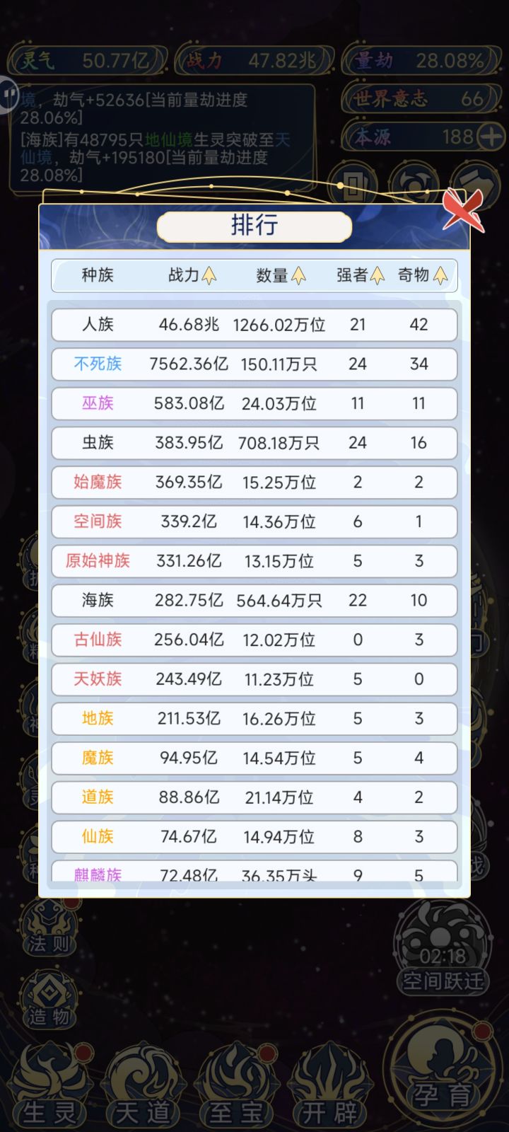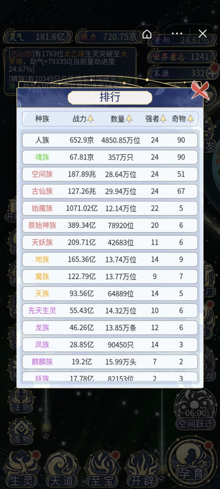 我这还少那个种族啊 现在35个种族就差一个#天道创造 #天道创造各位大佬 #
