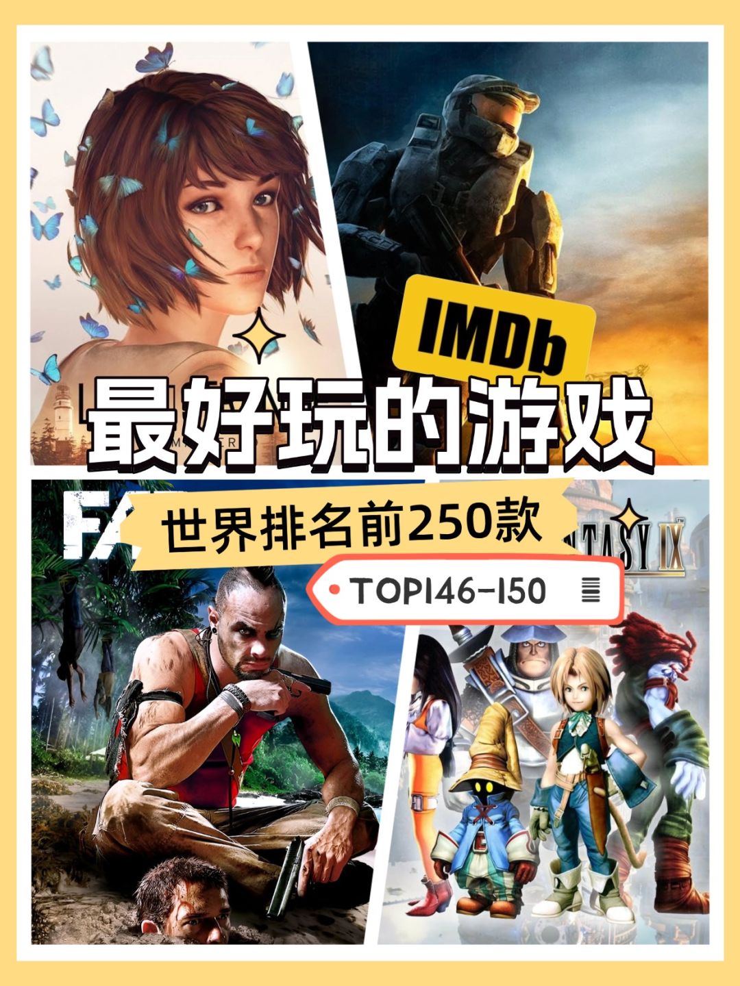 IMDB评选的全球最佳250款电子游戏榜单,每一款都是玩家心中的经典! 今天带你看看第146到150名的五款神作,每一款都拥有8.8的高分,绝对值得回味! 150|光环:战斗进化 科幻射击游戏的里程碑之作!2001年随Xbox首发,士官长的传奇就此开启。宏大的世界观、出色的关卡设计,奠定了主机FPS的黄金标准。 149|奇异人生 沉浸式互动电影游戏的典范!2015年发售,玩家扮演拥有时间回