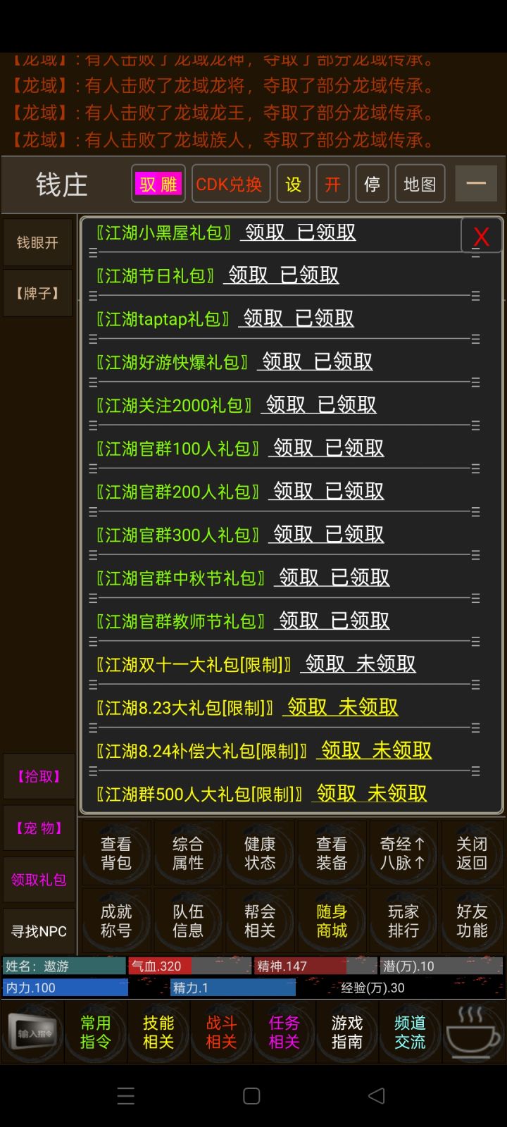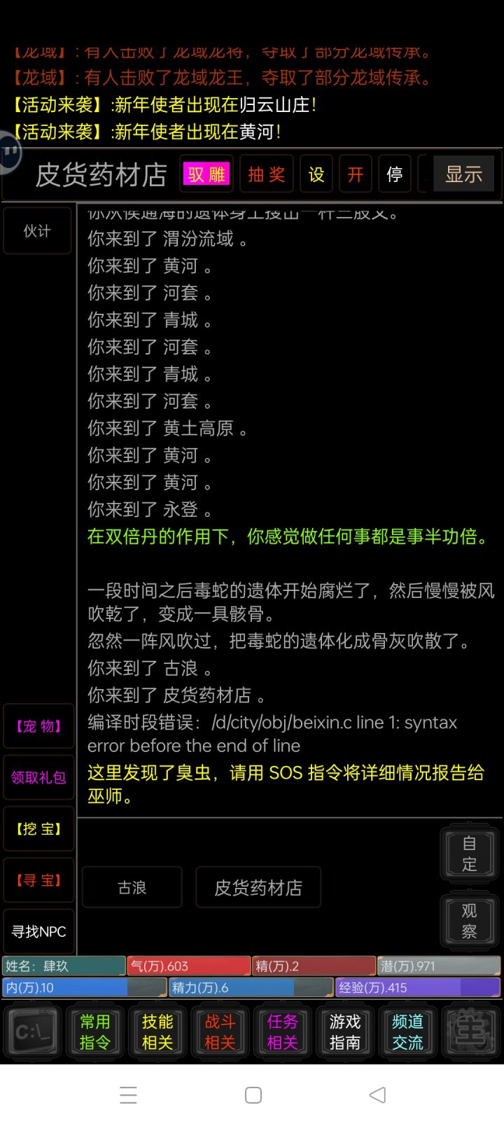 这是我玩了三年多的mud游戏现在已经连续更新了四五年了,刚入坑时内容很少到现在的五六张大地图(每个地图都有三四百个格以上)和华丽而厉害的武学(原创每一个都不一样)巫师付出了很多努力,持续更新只为了游戏更加好玩有更多的内容。在我玩过的mud中这是我见过福利最大的服了,先不说节假日的福利,巫师兴起就会发福利每次的都是实实在在的力度也很大,在这里你可以选择直接成为大佬大杀四方也可以选择白嫖成为小高手玩