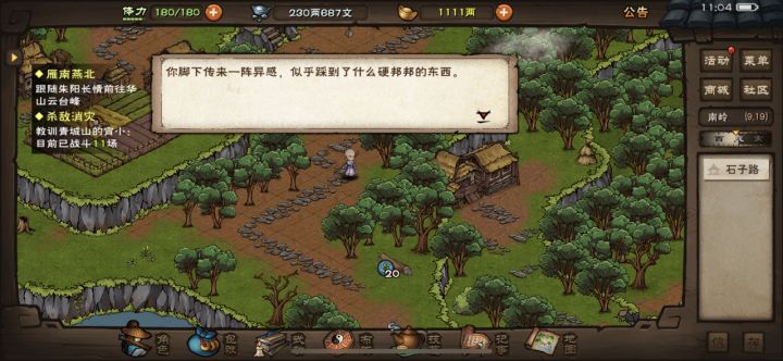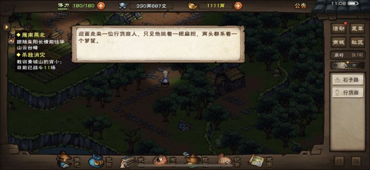 论行脚商奇遇SL总结经验总结:今天运气不错,一大早就触发钱袋紫色提示。因为之前看过相关的攻略,于是翻查了各种关于行脚商的攻略。发现都充满了不确定性。刚好遇到就全地图做了一波sl。(我是300银的时候遇到的)目前结论是:奇遇的触发是系统确定的,即人品决定你今天能不能遇上。当天如果你被选中以后,走固定的步数(不用走很多步数)即可触发,其中大雪山,昆仑山,其他地图城镇等区域无法触发,非城镇部分