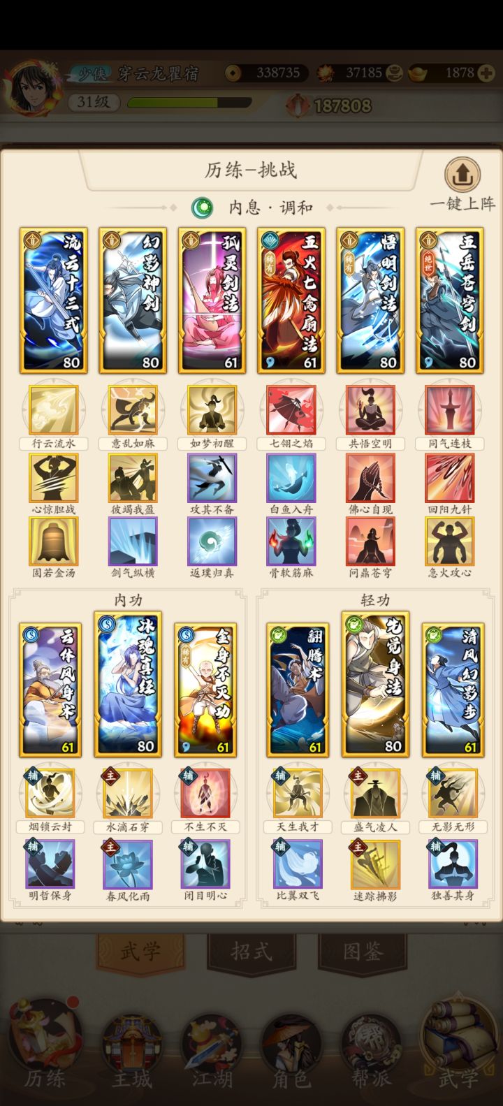 不知道这样搭配行不行,有没有大佬指点一下#攻略#新手攻略#无名江湖#套路#调和剑