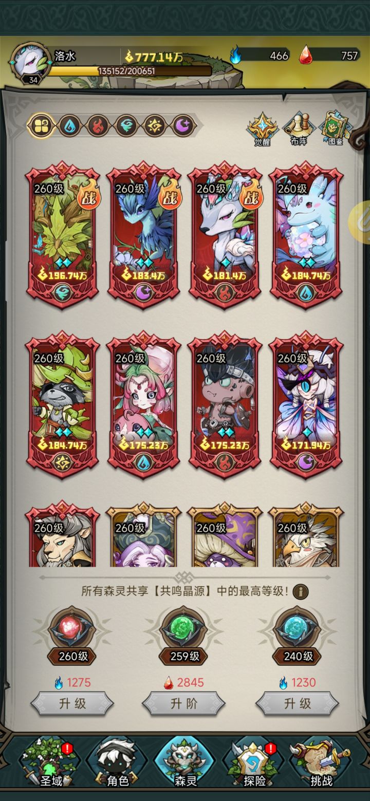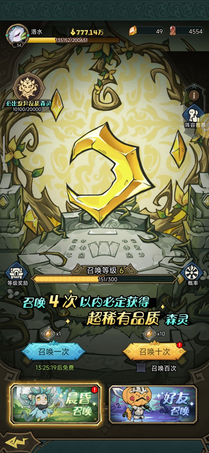 今天是一区奥丘第2天,战力已经来到了770w,爬塔310层。首先这个游戏,他女王和小鹿只有礼包获取了才会加入卡池。那么作为一个低氪玩家,这种关键森灵的作用还是挺关键的,所以我建议在抽卡之前,如果你决定当一个首充党就先把小鹿开了,再氪多一点的话就把女王开了,然后再开启我们的抽卡之旅,因为只有在开了卡池之后,我们抽的每一抽才有可能获取到小鹿和女王升星的素材,如果在第二天才开或者是之后才开,那前面的几百