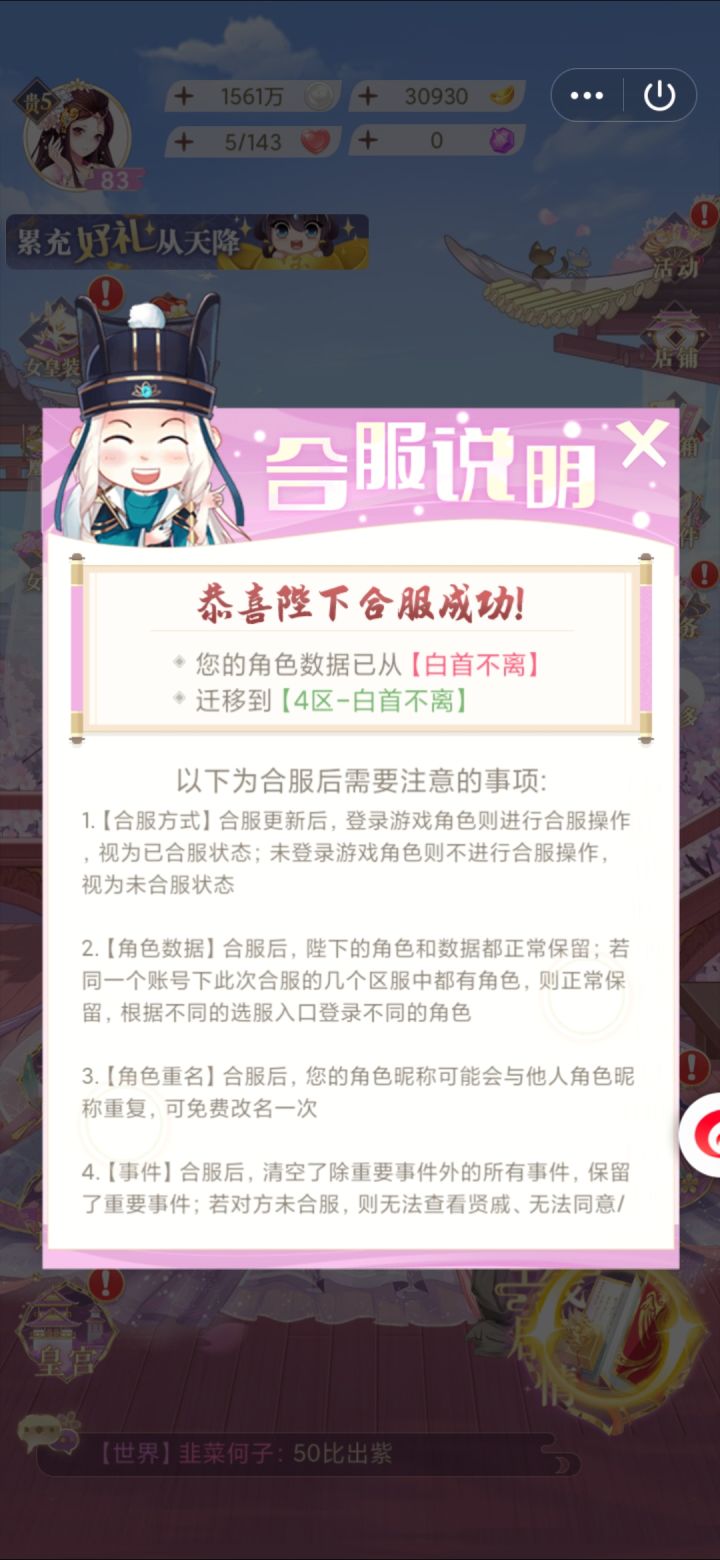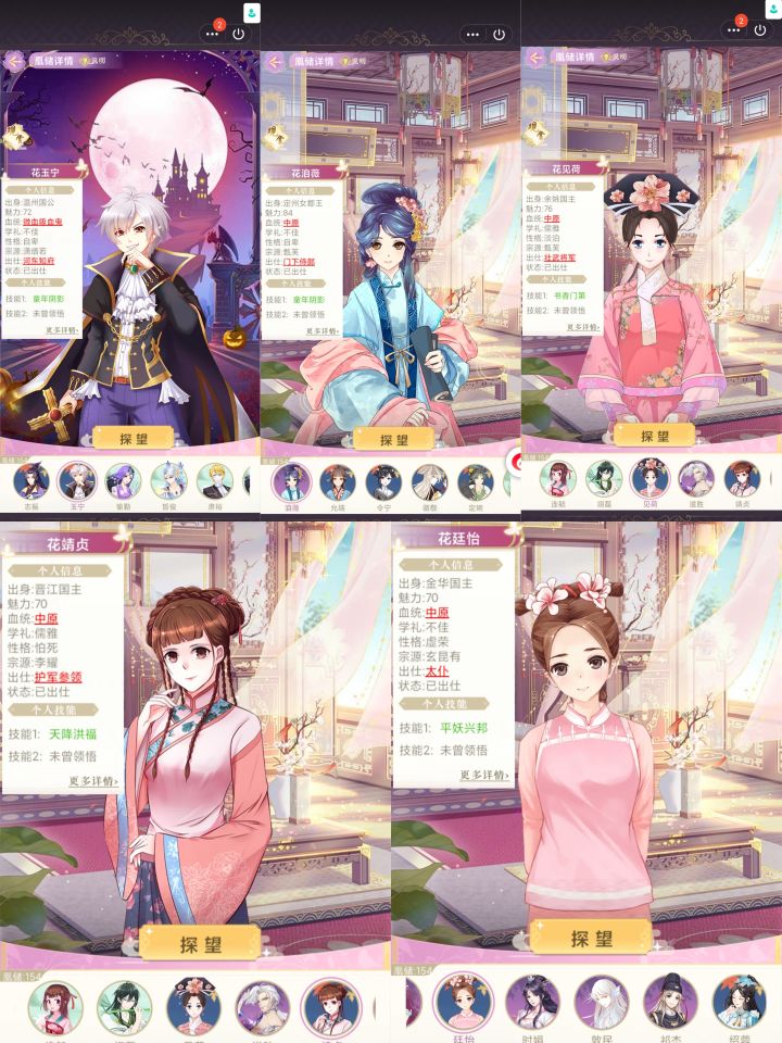 新区玩了几个月找回了5年前q区小程序的号,很多材料已经没用,以前的教坊司很好玩,娃都可以打入教坊司,在教坊司可以获得其他玩家的血统娃,玩的时候没有关注血统什么的,当时玩的时间也不长,还挺可惜的。现在的画质跟设计都很精致,不过以前的低魅娃虽然不是很好看但是人物多样性很丰富,玩法也多一点,妃子会生病可赐药医治,也可以给她国妃子下毒,或者调戏/掠夺她国妃子,虽然有很多弊端,但是玩法确实比较多。现在玩法很