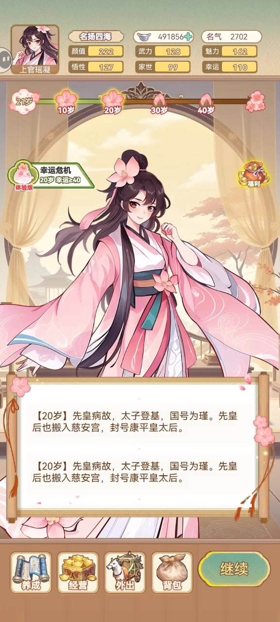 目前bug还是比较多的,我遇到的就有:银两清零不显示真实数量、出行卡住点不动 好感度和主线剧情也不太能挂钩,当个模拟器玩还可以 #宝藏游戏安利派对 #游戏讨论 #游戏推荐 #模拟人生 #女配养成计划