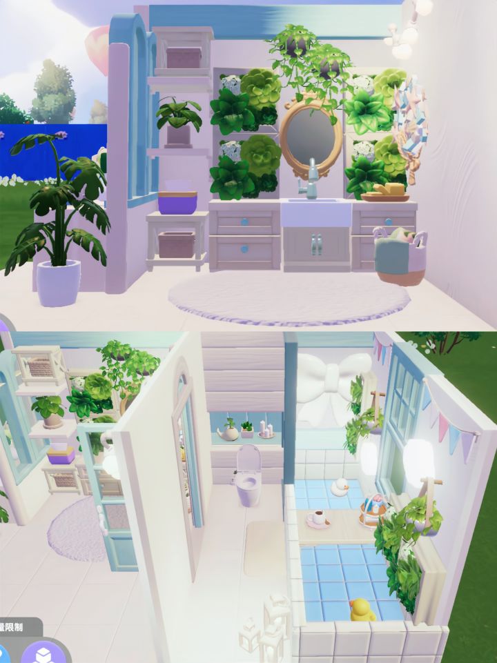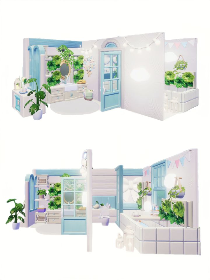 重点是奶fufu+ baby蓝的配色以及干湿分离的布局,绿植装饰可以根据喜好来搭配💡#心动小镇创作计划 #心动小镇 #沙滩乐园季创作计划 #奶油风 #心动小镇装修 #心动小镇建房