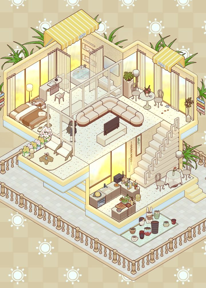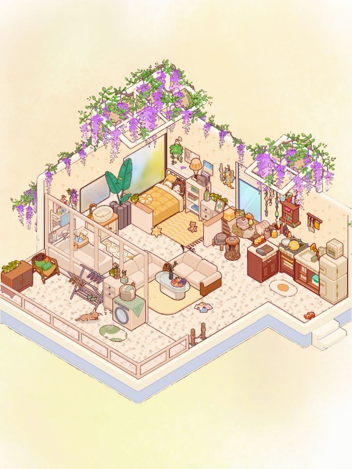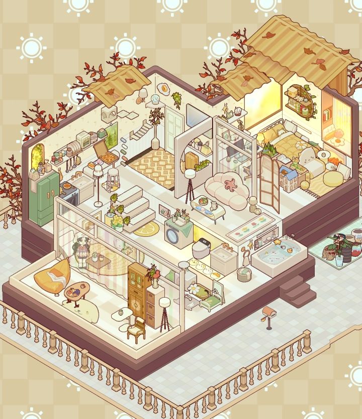奶油风和夕阳更配哦!真的好好看,好喜欢吖#心动小镇 #心动小镇创作计划 #奶油风 #心动小镇内饰教程