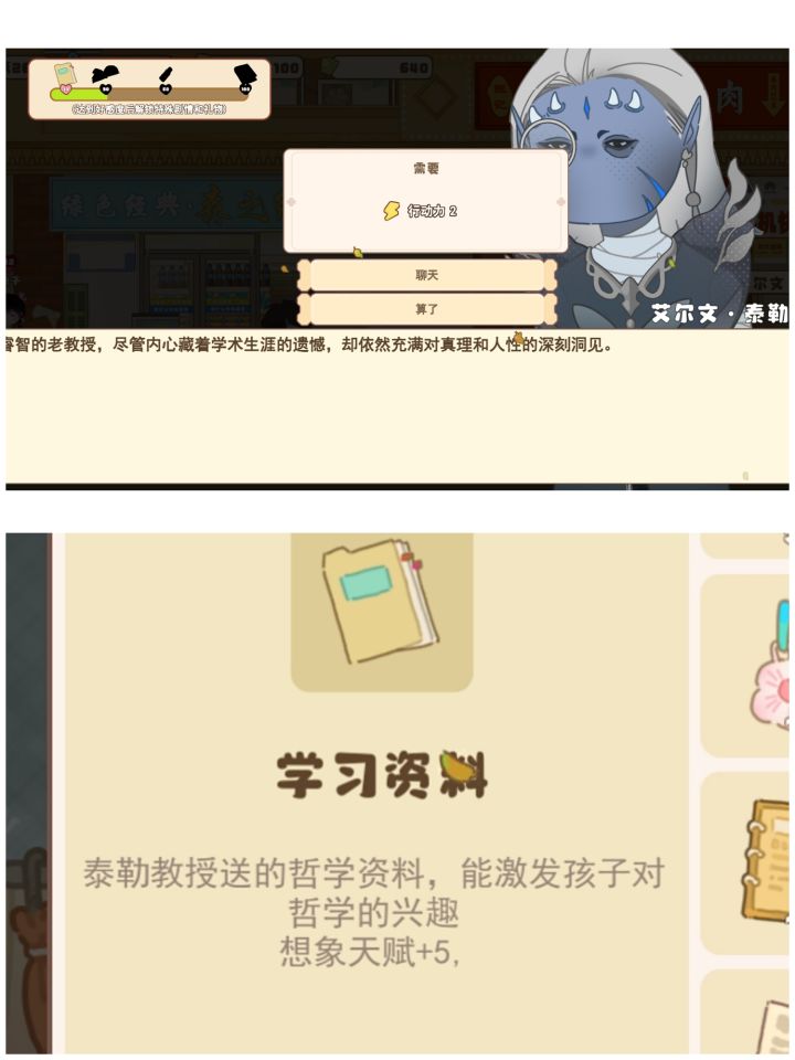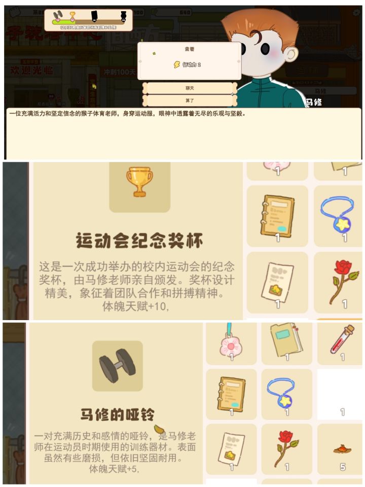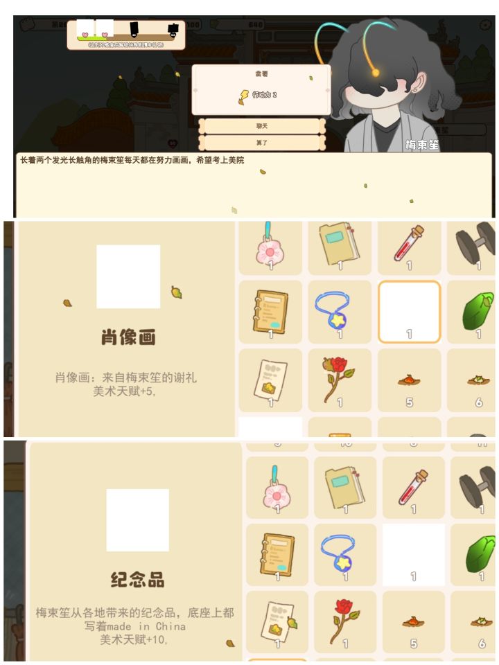 #游戏日常 #好感10~30好感度所获得的物品除了个别的。1.凉子给的道具属性是你确定完孩子他日程完之后,回复的那个执行力。比如你一般每天搞完之后,第2天他才加20你有了他的道具了之后那么你就会得到222.梅束笙如他所名美术生他是画家也就是艺术生嘛,所以就是关于画画的,可能会触发画画类的课程。3.尼古拉斯康纳。我是怀疑他的原型可能是那个。所以触发的课程就是关于科学,增加头脑的和真理的。4.