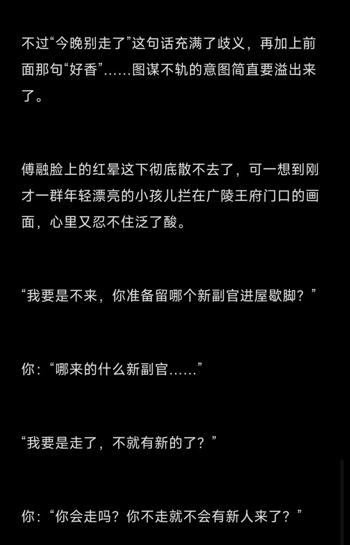 眼看着广陵王年岁渐长,越来越多的人把求亲的目光放到你身上。不管是认识的还是不认识的,都想往府里塞人,广陵王府的门槛都要被踩烂了。虽说广陵王欺男霸女的声明远播,可姑娘们毕竟是爱美人的。就算是不情不愿地来应付相亲的姑娘,在一场宴席后也会放下成见。更有胜者直接对广陵王一见倾心,为了你情愿终身不嫁。后来大伙儿发现,你对姑娘们确实好,但也从未越界,更没有立她们为妃的打算。于是有人换了种思路,找了一群美貌